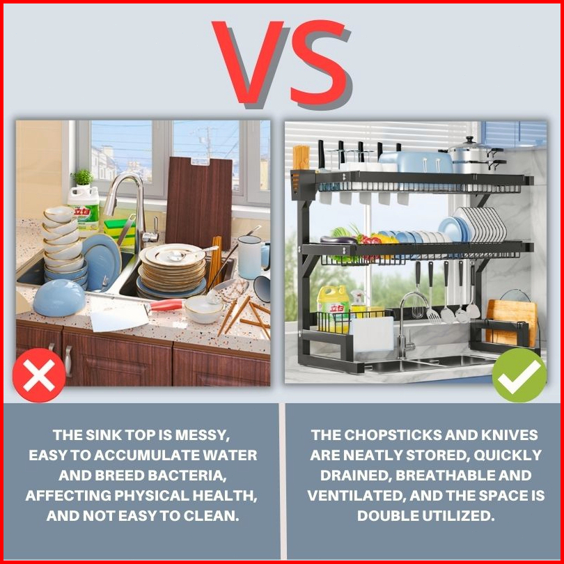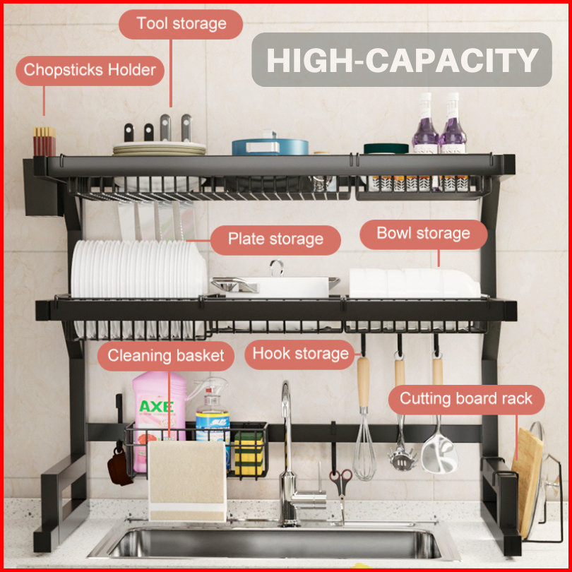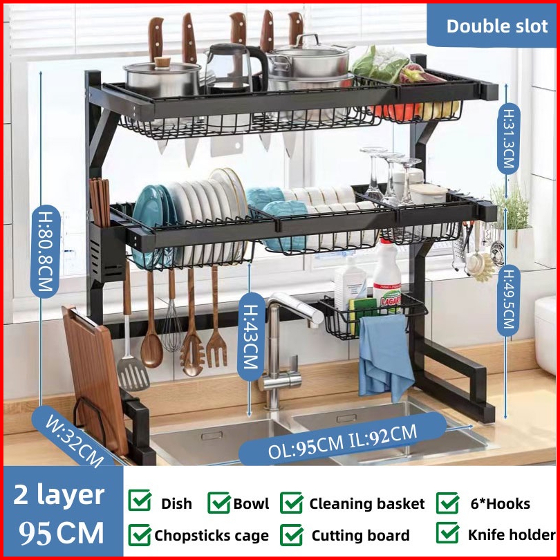 Kenzzo Rak Piring Wastafel Rak Cuci Piring Rak Serbaguna Atas Wastafel Rak Piring Dengan Aksesoris Stainless Steel