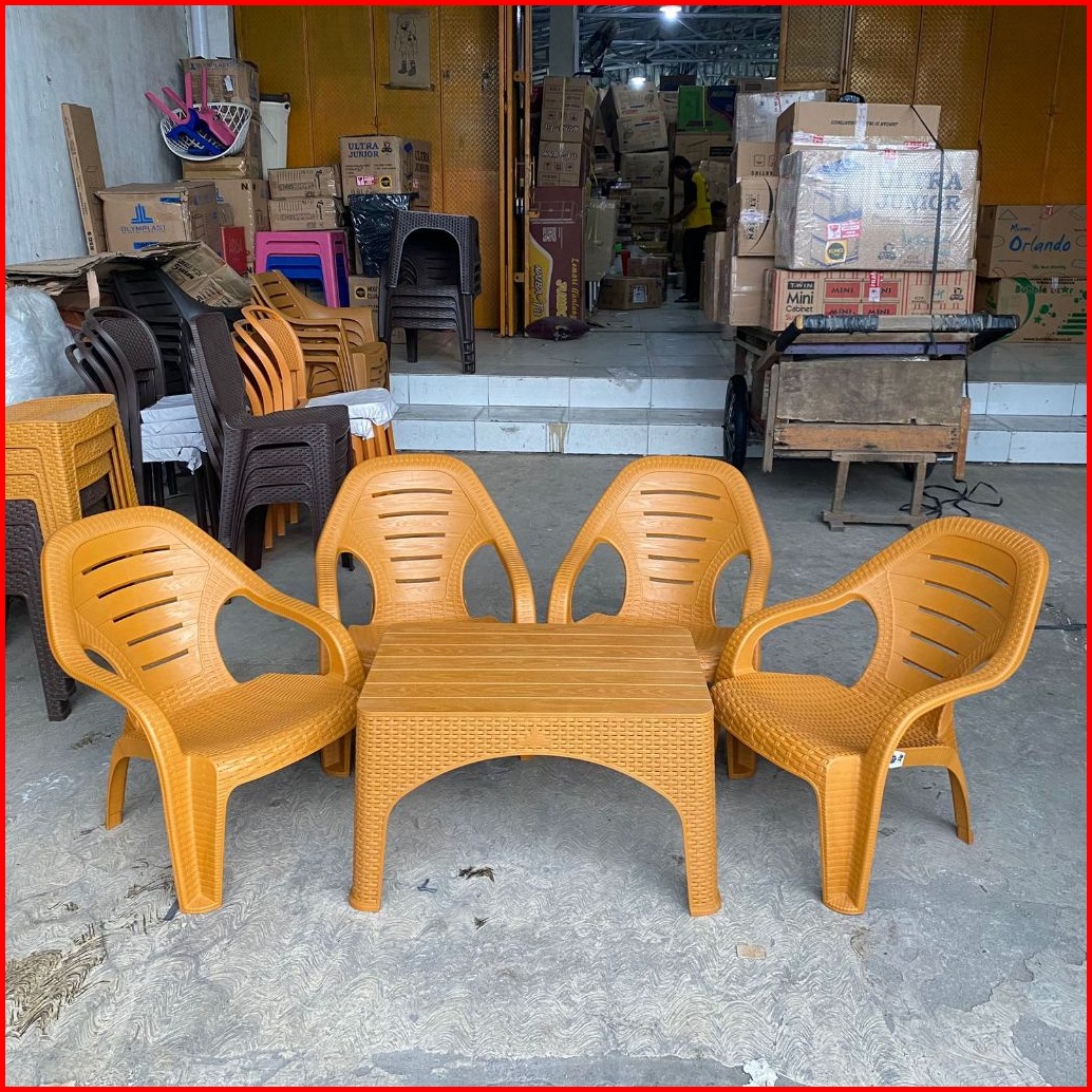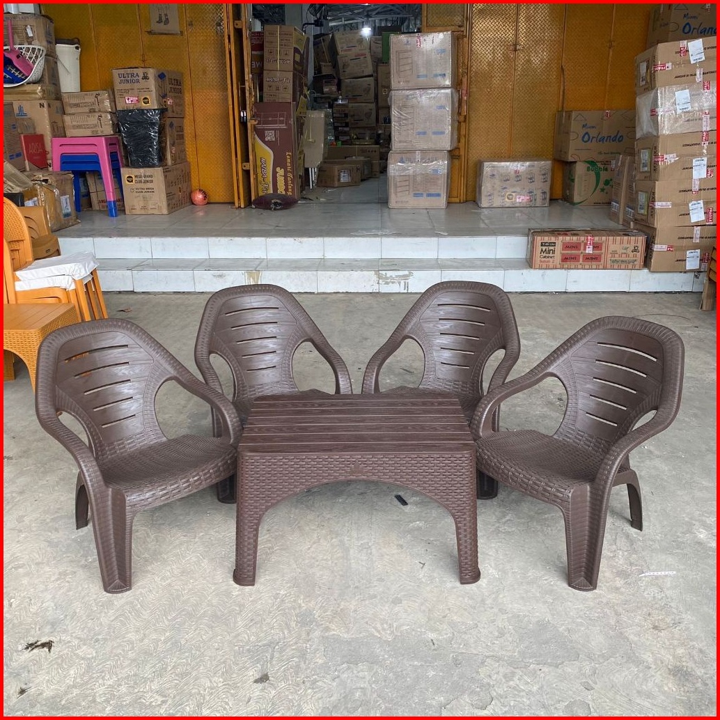 Olymplast - Set Meja Dan Kursi 1 Set 4 Kursi Santai Plastik Ol 509 Rotan Meja Kursi Teras Kursi Taman 1set Kursi Taman