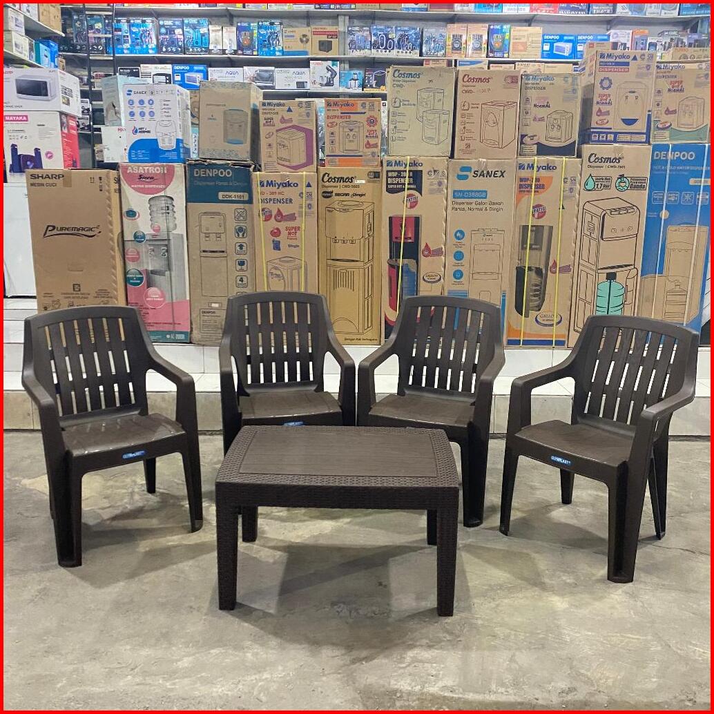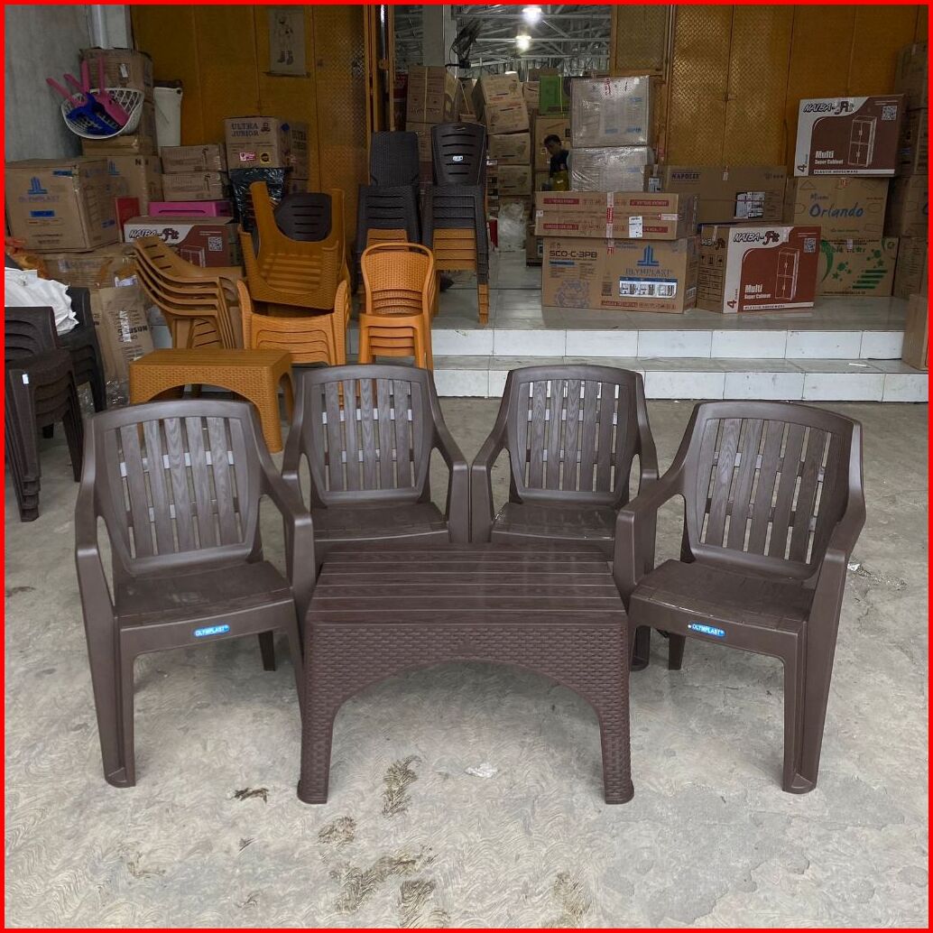 1 Set 4 Kursi Teras Santai Anyaman Plastik Olymplast Ol 507 Meja Oct-r Olymplast Meja Ost-r Olymplast Kursi Set Taman Ku