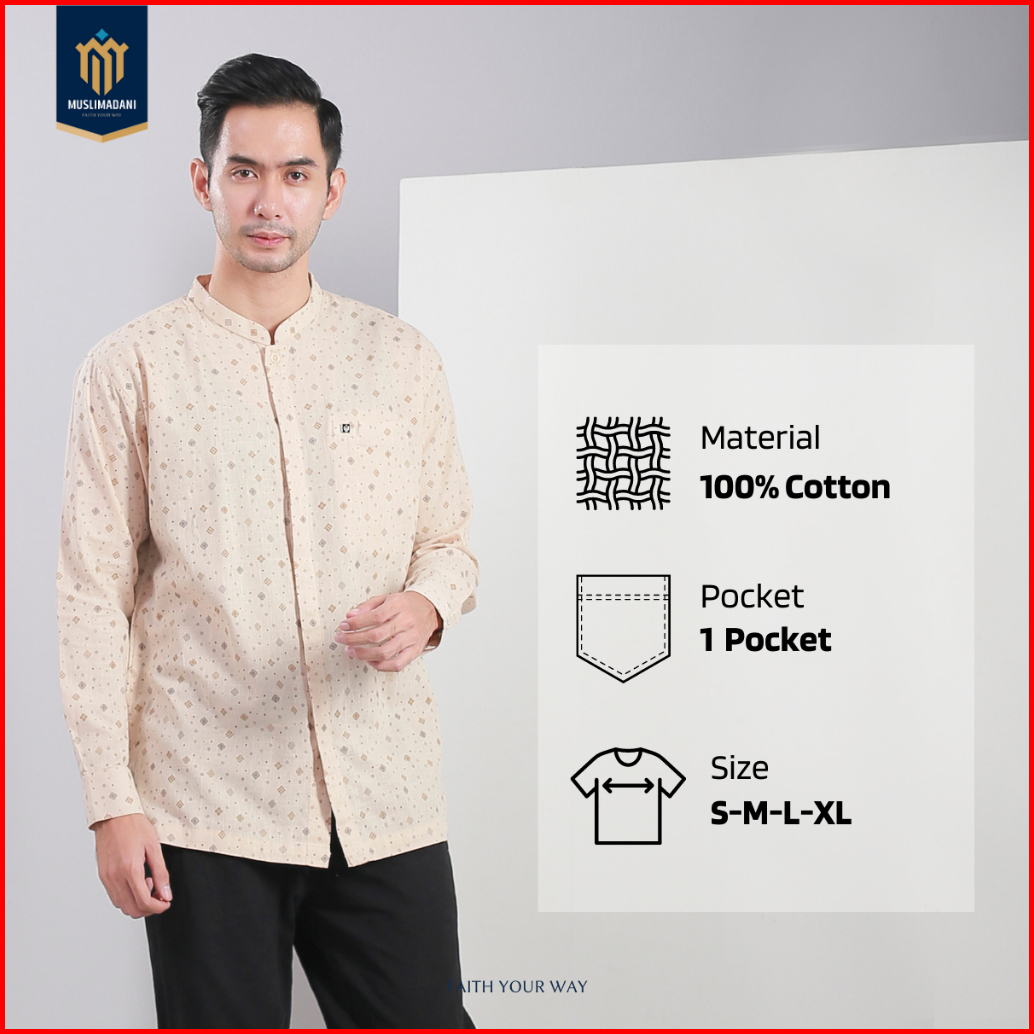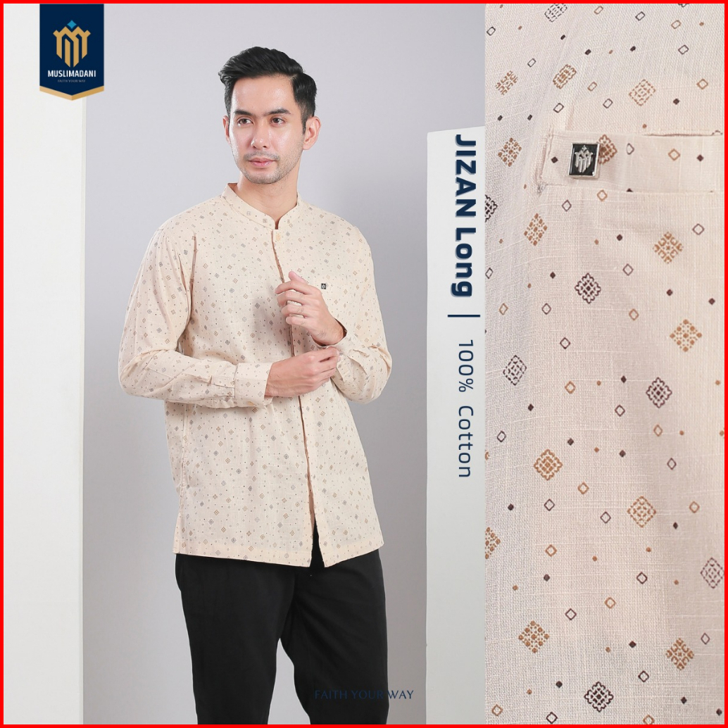 Muslimadani Baju Kemeja Koko Jizan Regular Kemko Dewasa Lengan Panjang Pakaian Muslim Pria