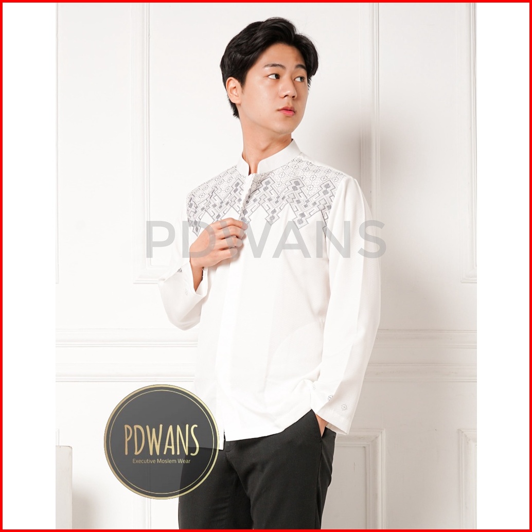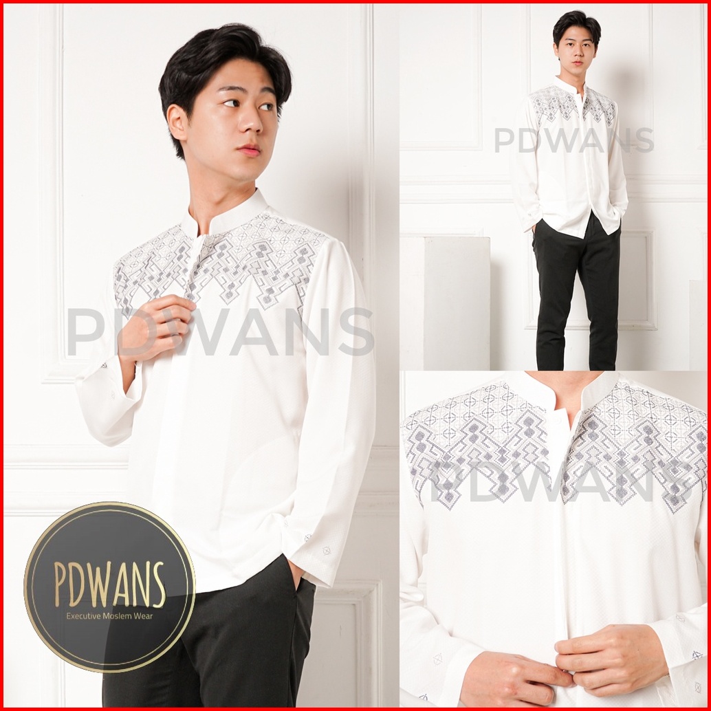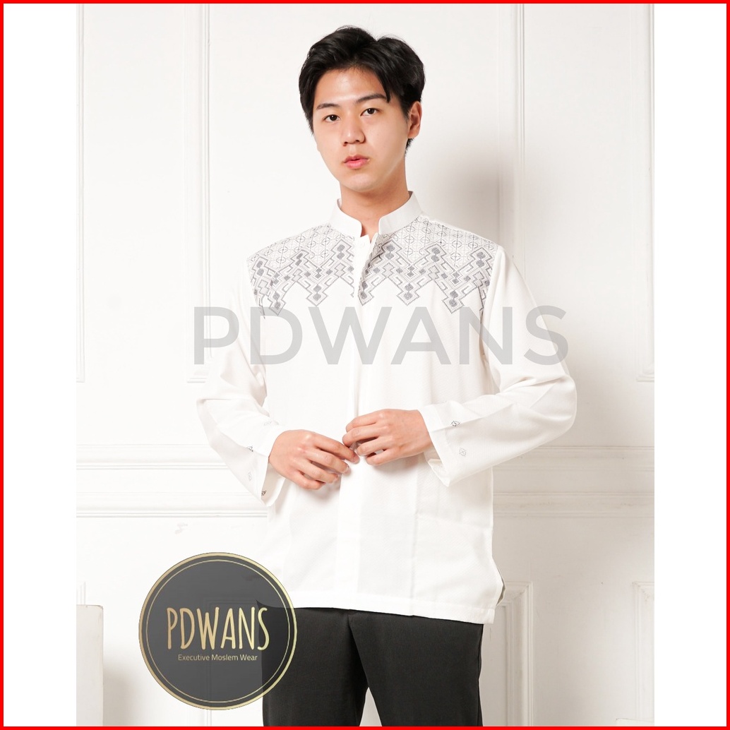 Baju Koko Lengan Panjang Putih Kemeja Koko Muslim Bordir M L Xl Pdwans - Bmtpjg35