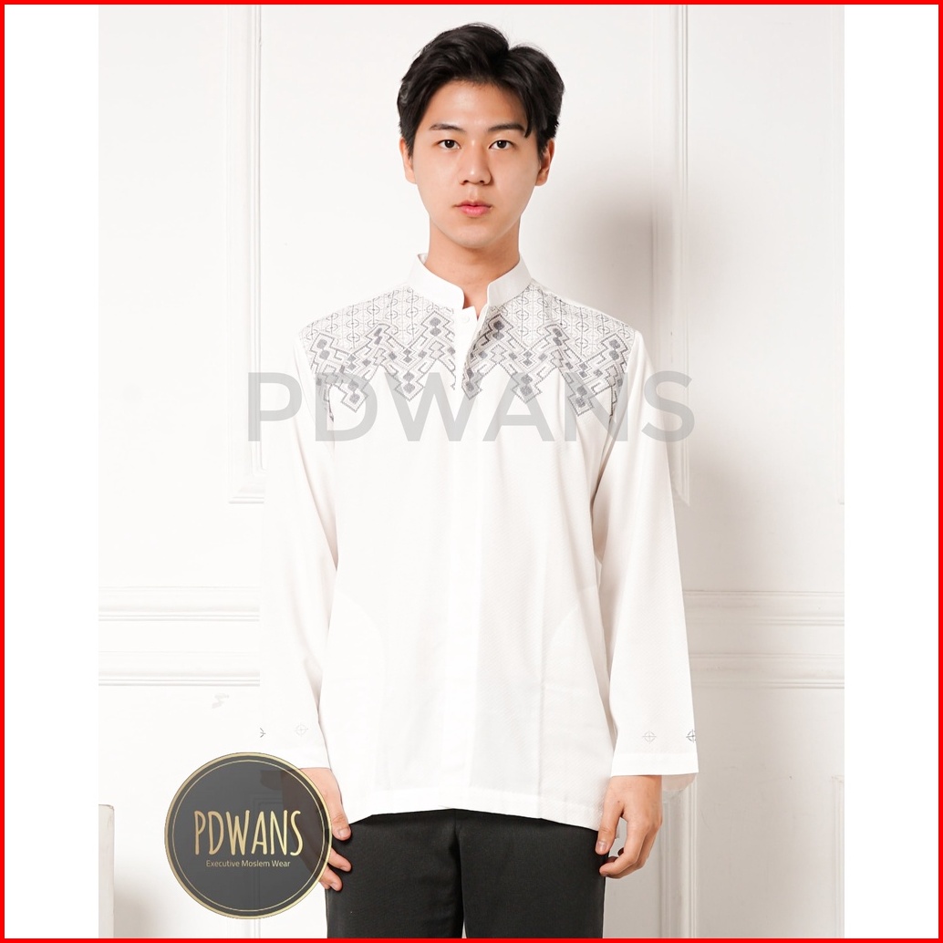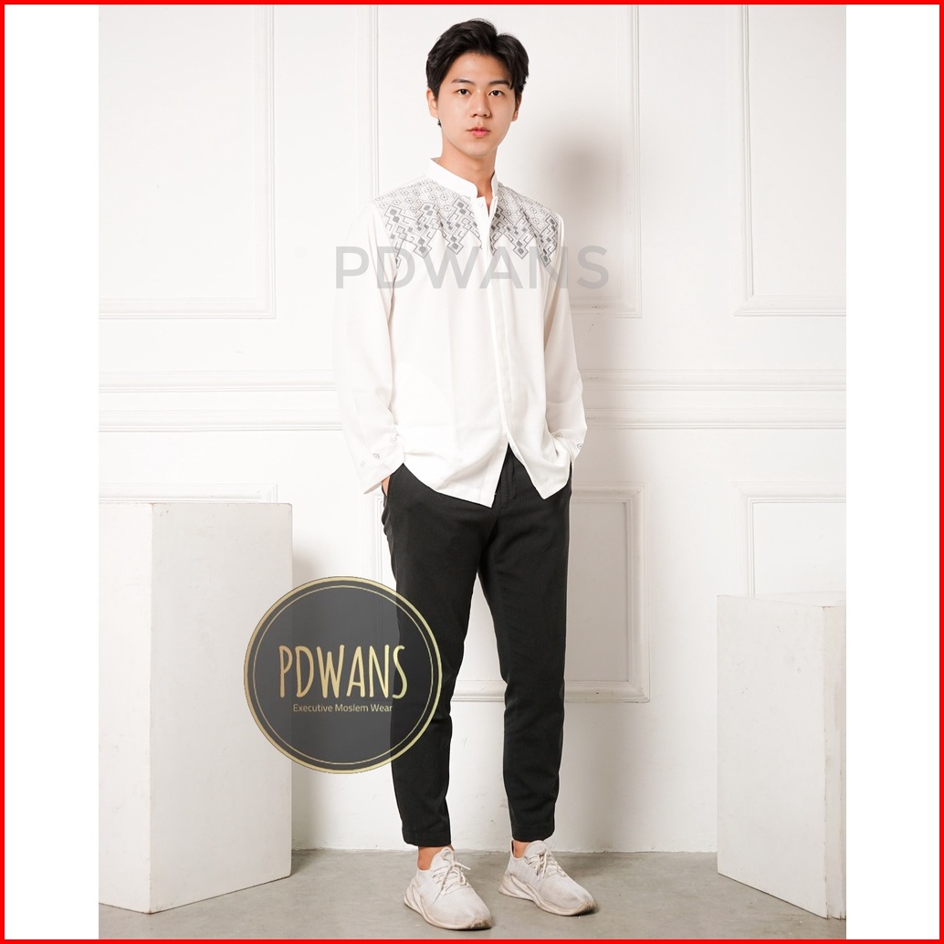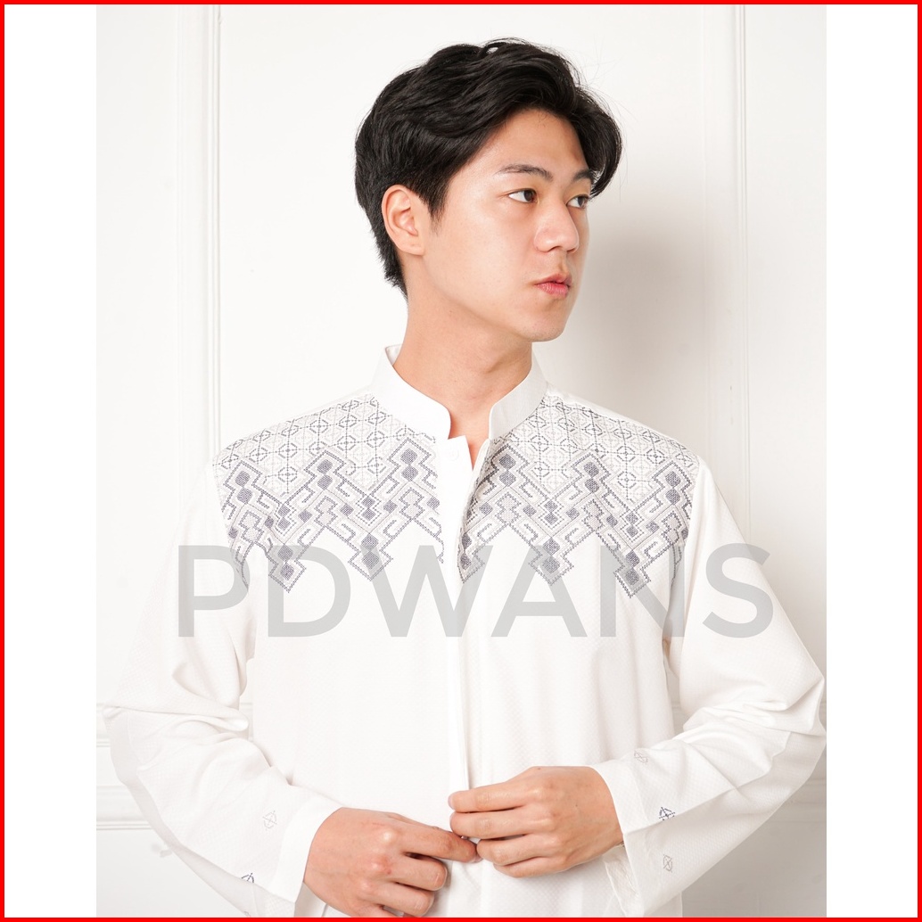 Baju Koko Lengan Panjang Putih Kemeja Koko Muslim Bordir M L Xl Pdwans - Bmtpjg35