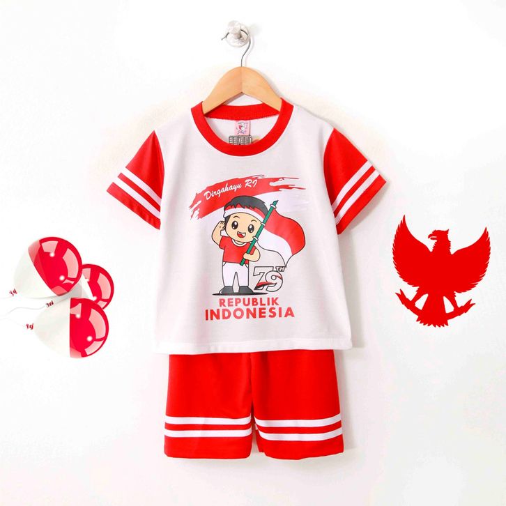 Setelan Distro Anak Laki2 Kaos Kemerdekaan Indonesia 2-9 tahun/Setelan Anak HUT RI 17 Agustus/Cowok