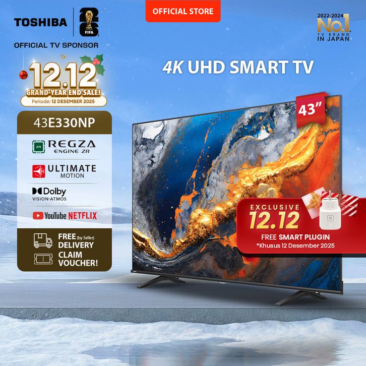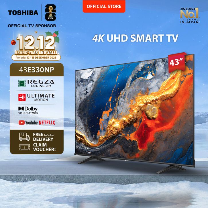[KHUSUS ONLINE] Toshiba TV 43" 4K UHD Smart TV - Dolby Vision Atmos Netflix Disney+ AirPlay WIFI BT HDMI - 43E330NP