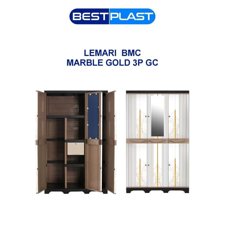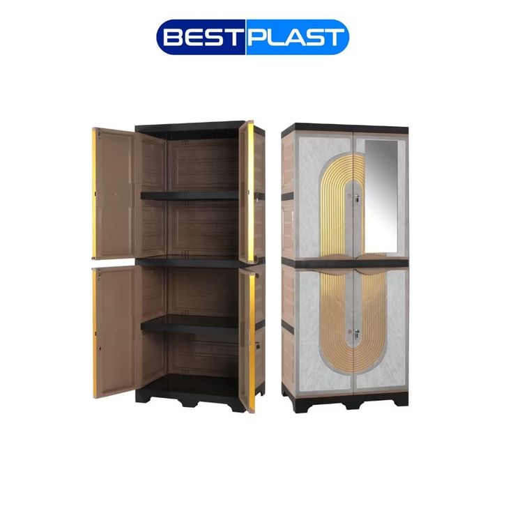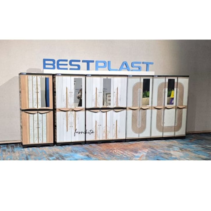 BESTPLAST - LEMARI PAKAIAN PLASTIK PREMIUM 2 dan 3 PINTU KUNCI KACA