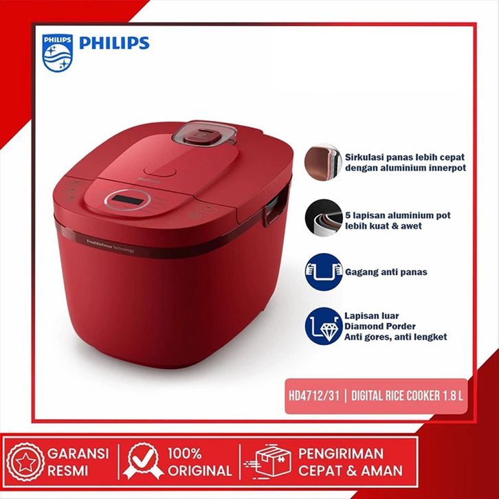 MAGIC COM PHILIPS 1.8 LITER HD4712/31 MERAH RICE COOKER - MEJIKOM PHILIPS OFFICIAL STORE