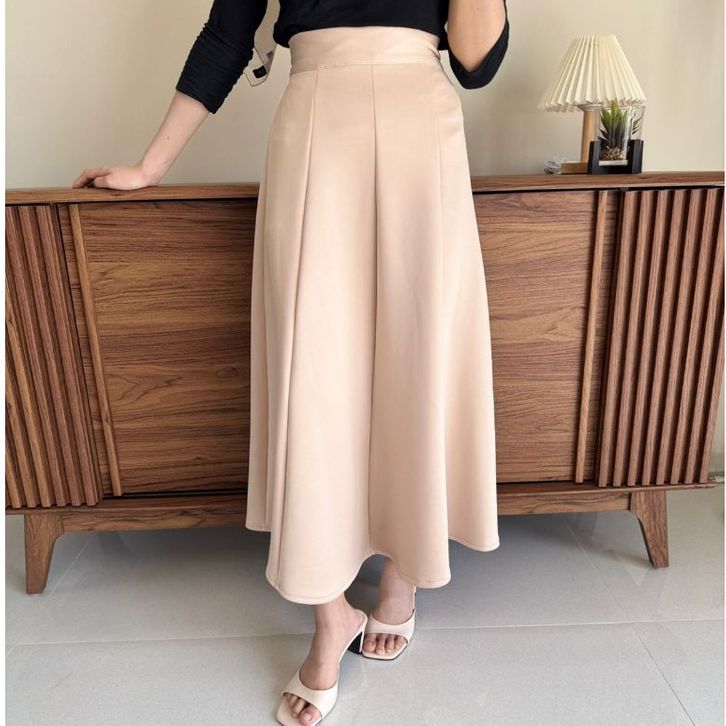 Rok Wanita Kekinian Korean Loose Maxi Anti Kusut Polyester Basik Polos Haruka Skirt