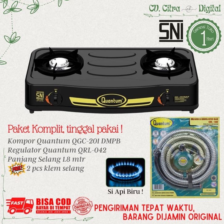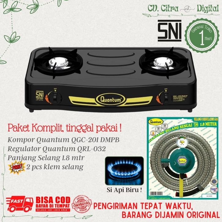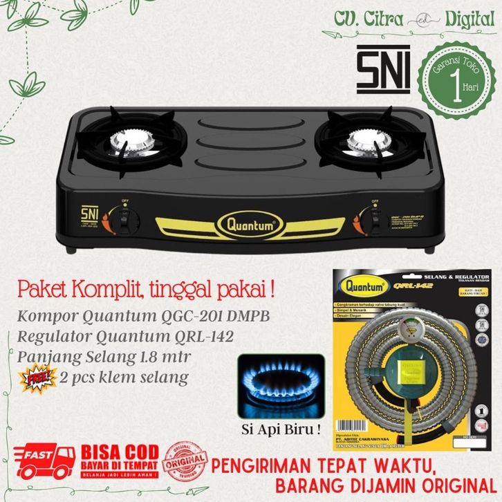 Paket Kompor Gas Quantum 2 Tungku QGC 201 DMPB free selang regulator gas Quantum ORI PRODUCT