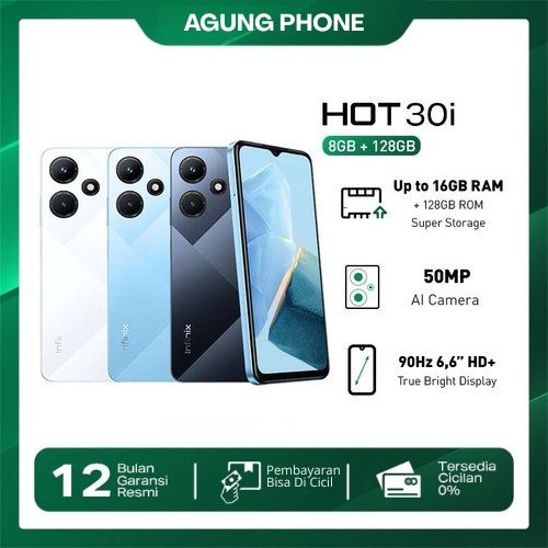 Hp Infinix Hot 30i Ram 8/128GB Up to 16GB Helio G37 50MP Hp Tanpa Dp Infinix Official Store Hp Murah infinix hot 30i