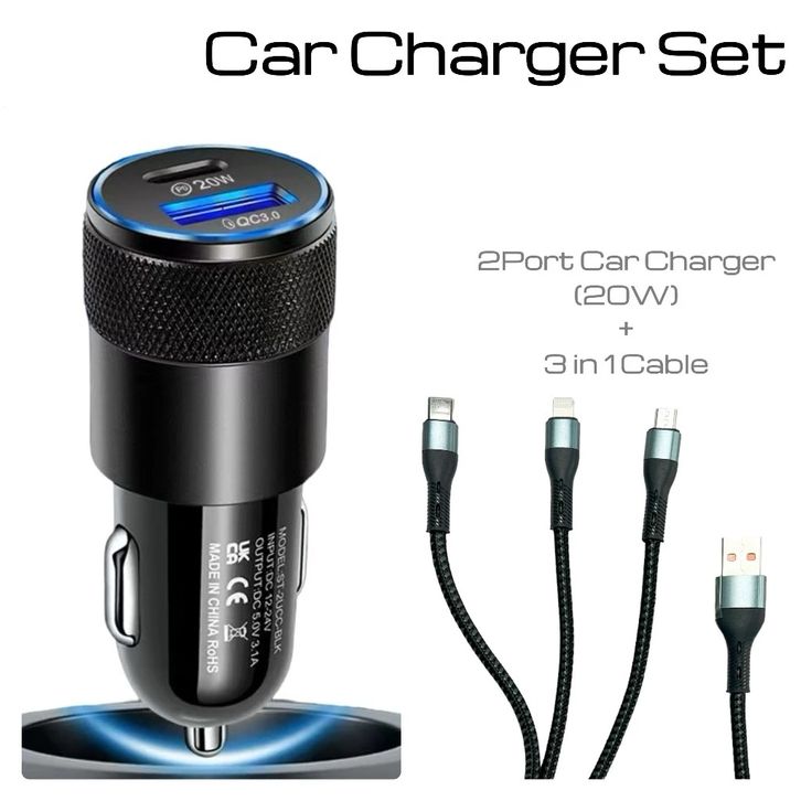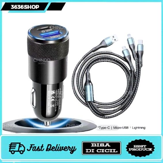 Charger Mobil Fast Charging Charger Mobil 24 Volt Charger Mobil Tipe C Casan Mobil 3in1 Kabel