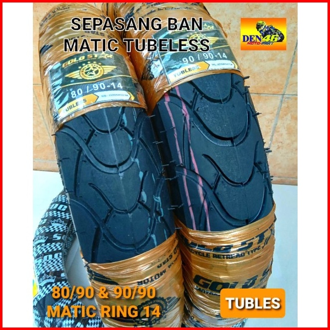 Sepasang 1 Set Ban Luar Motor Matic Metik 80 90 90 90 Ring 14 - Vario Beat Scoopy Lama Spacy Mio Spin Nex Motif B Trex