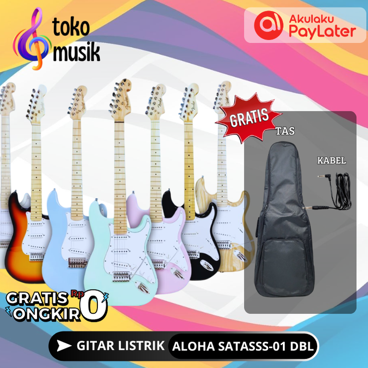 GITAR LISTRIK ORIGINAL ELEKTRIK MERK ALOHA ORIGINAL TIPE SATASSS-01 DBL BLUE OCEAN BONUS TAS DAN KABEL JACK LISTRIK