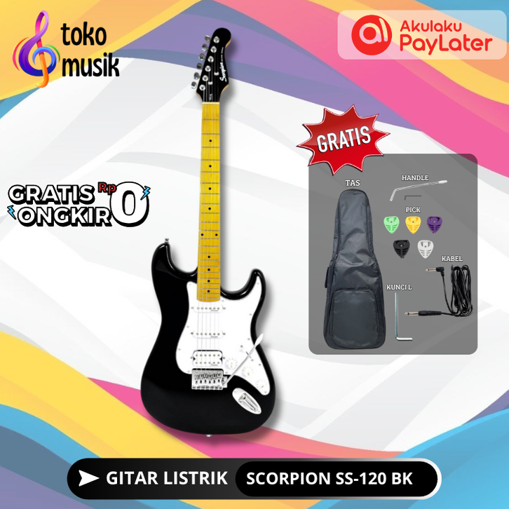 GITAR LISTRIK ORIGINAL MERK SCORPION ORIGINAL MODEL STRATOCASTER TIPE SS-120 DELUXE SERIES GITAR ELEKTRIK