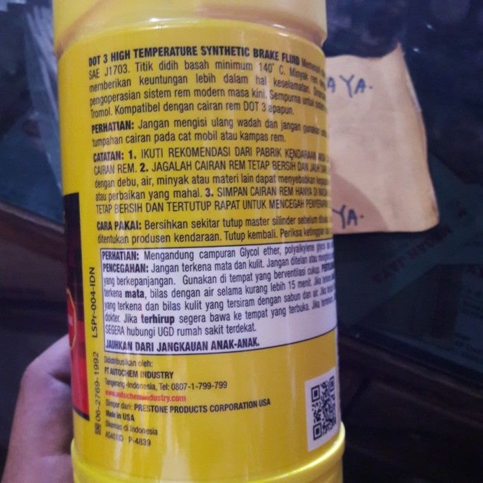 Minyak Rem Merah Prestone 1000 mL / 1 liter Dot-3 untuk motor mobil