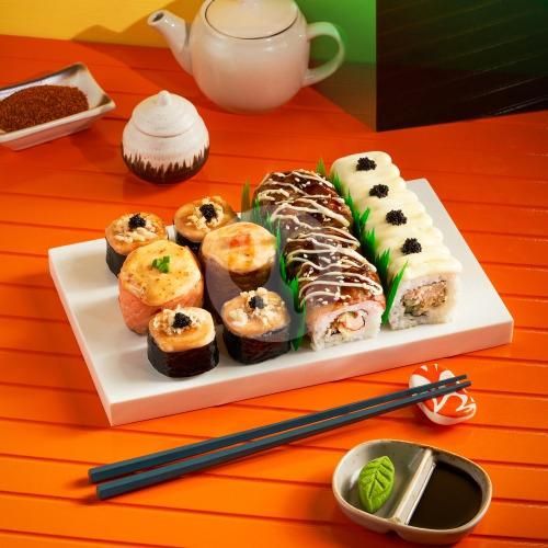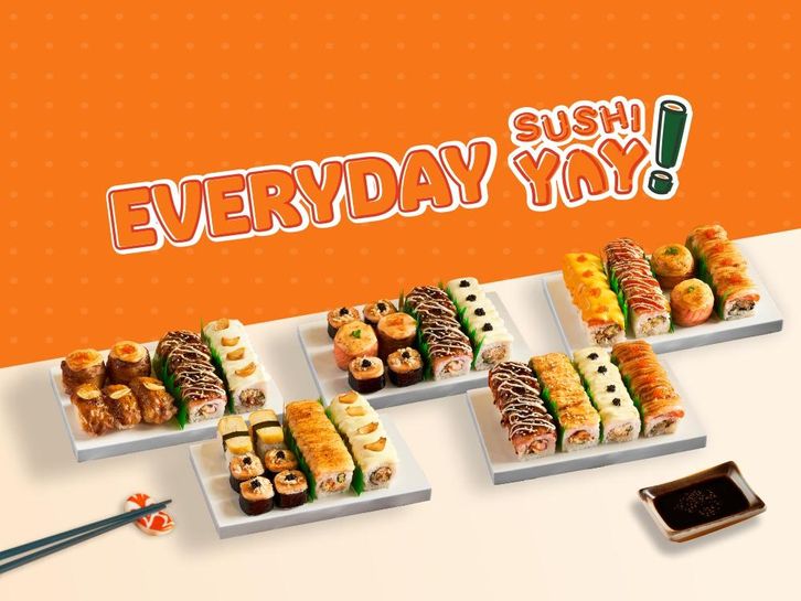 Sushi Murashi Platter, Sushi Tsubasa Platter, Sushi Okemura Platter, Sushi Hemato Platter, Sushi Yay! Platter, Sushi Bomb Platter, Sushi Ultimate Platter, Sushi Beef Platter, Sushi Salmon Platter, Yay! Canape, Stamina Roll, Spicy Karaage Roll, Gyuniku Roll, Bulgogi Beef Roll, Tuna Salad Crunchy Roll, Salmon Dynamite Roll, Salmon Mentai Roll, Salmon Cheese Roll, Salmon Mentai Bomb, Salmon Spicy Bomb, Beef Mentai Bomb, Beef Spicy Bomb, Salmon Skin, Chicken Karage, Kani Tempura, Tamagoyaki, Aqua 330ML, Coca Cola Slim 250ML, Sushi Murashi Platter,,