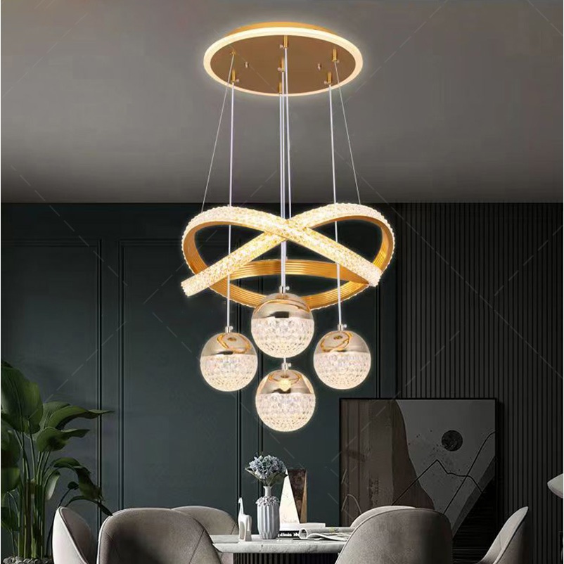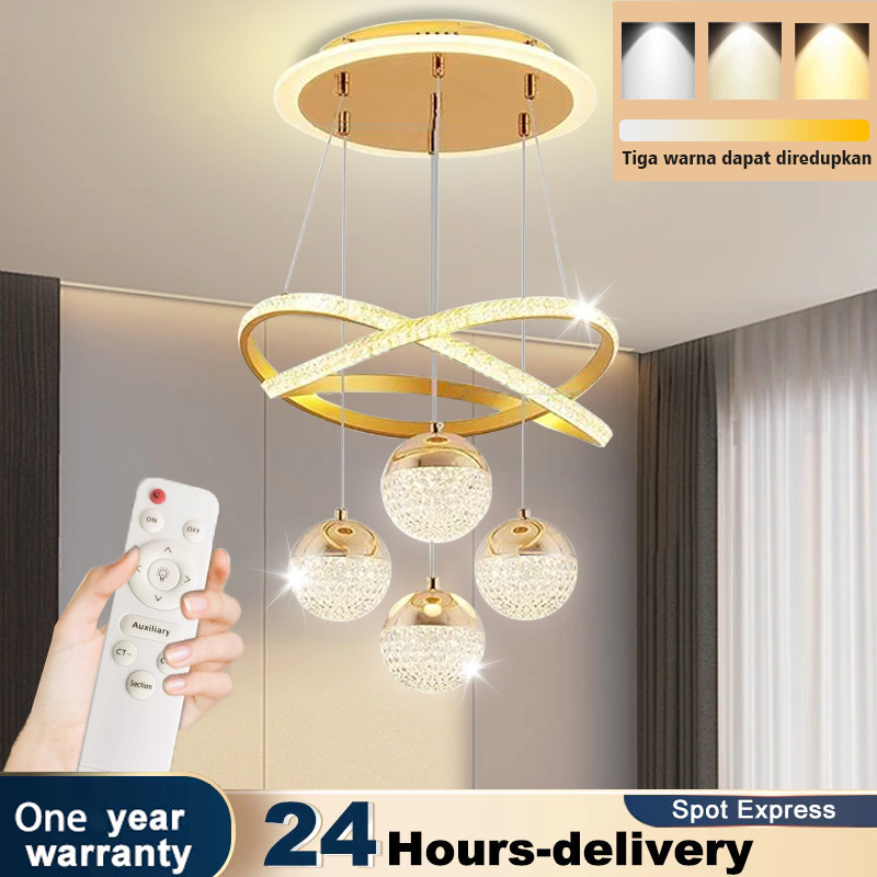 { PROMO } LAMPU GANTUNG KRISTAL LED NORDIK 3 WARNA MINIMALIS MEWAH CHANDELIER KAMAR TIDUR RESTORAN BAR KORIDOR RUANG TAM