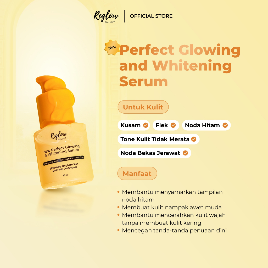 Reglow Perfect Glowing and Whitening Serum - Membantu Mencerahkan dan Menyamarkan Flek Hitam & Noda Bekas Jerawat