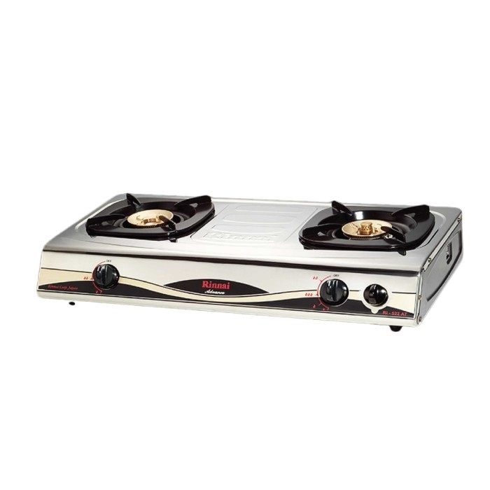 Rinnai RI522AT Kompor Gas 2 Tungku Api Besar Stainless Steel Timer RI-522AT ORIGINAL RINNAI