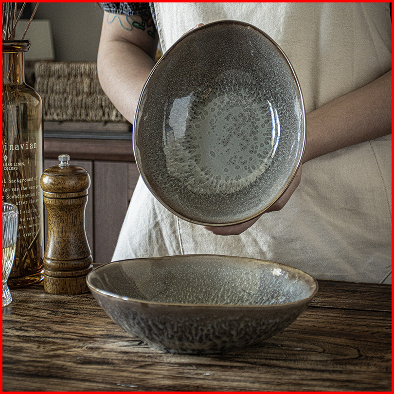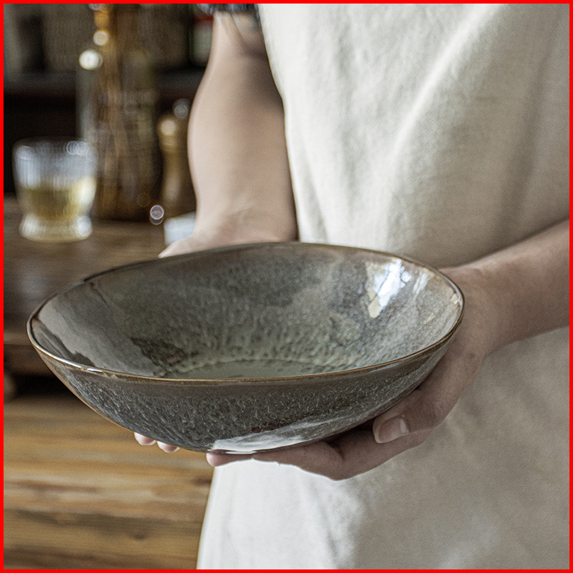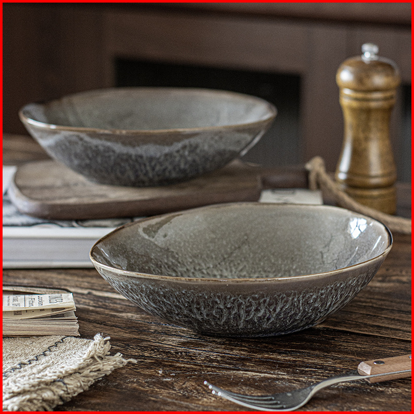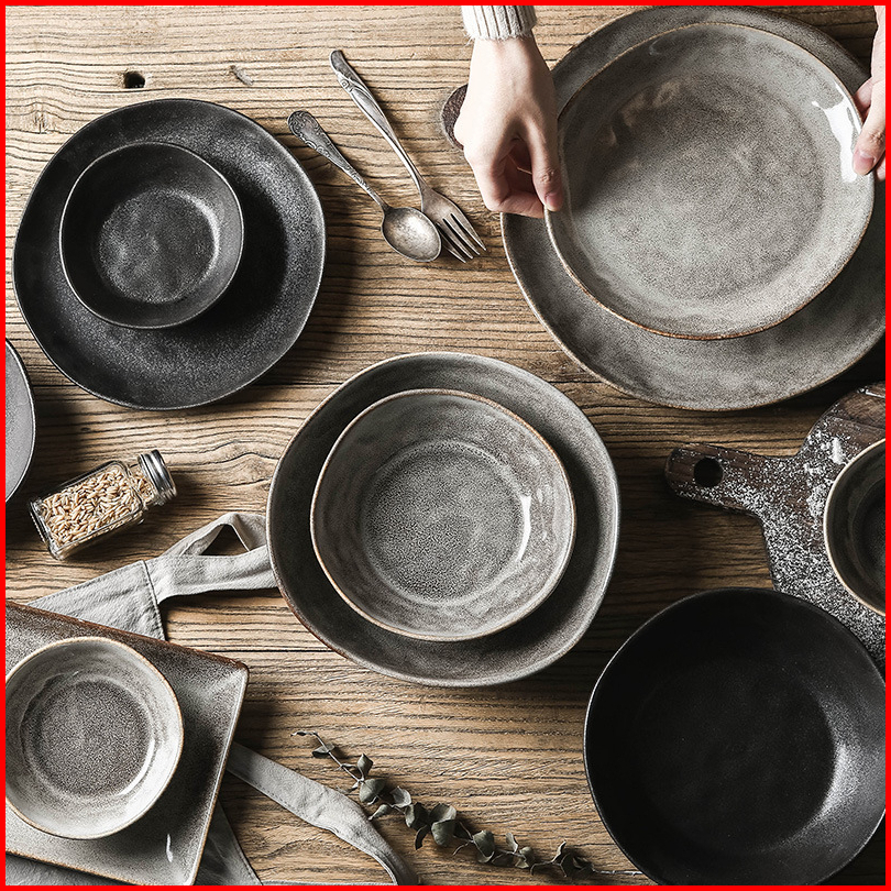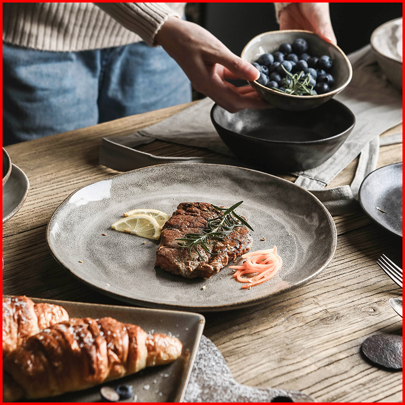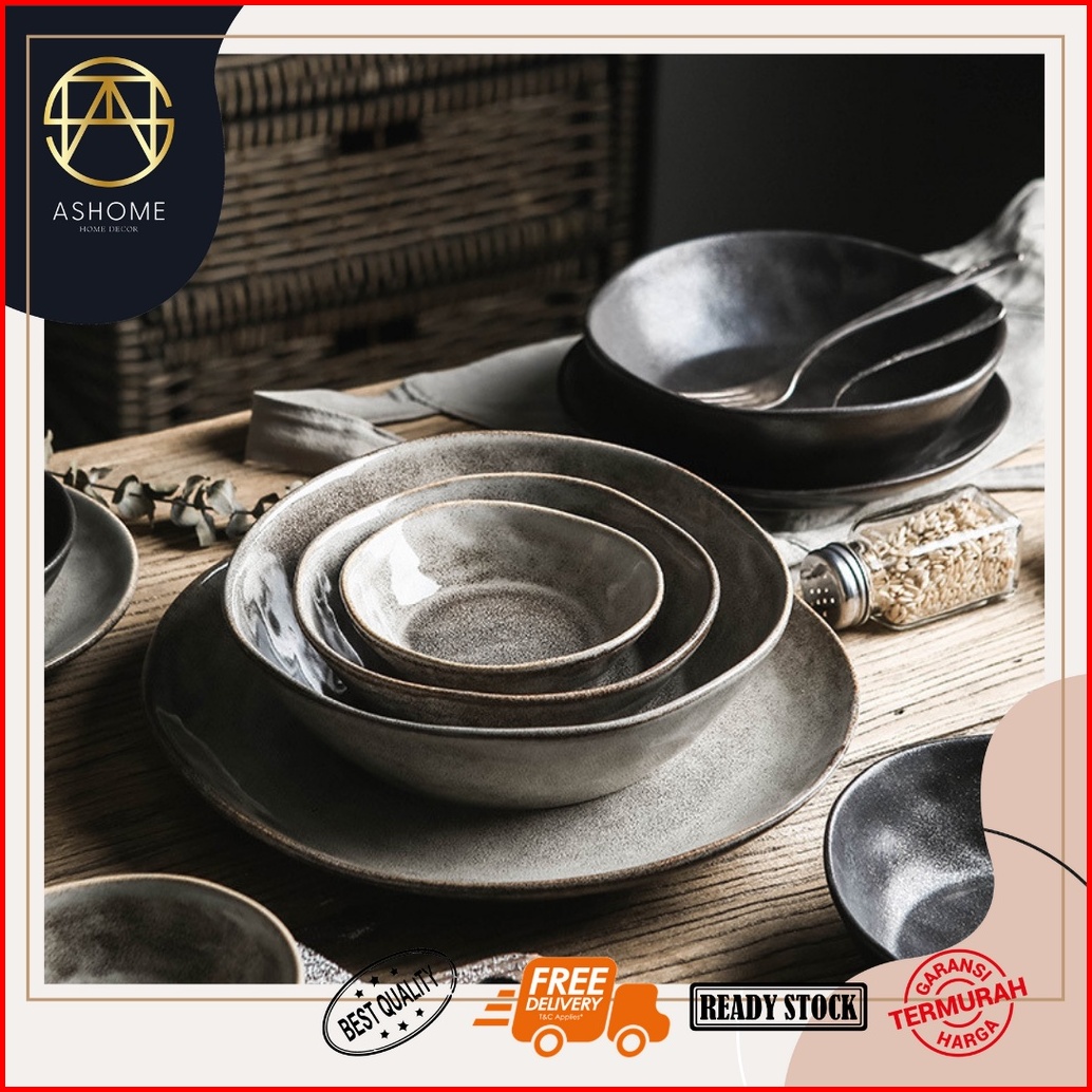 Ashome Piring Makan Keramik Gravel Collection Motif Vintage Stone Ukurang Lengkap Piring Makan Keramik Coklat Tua Elegan