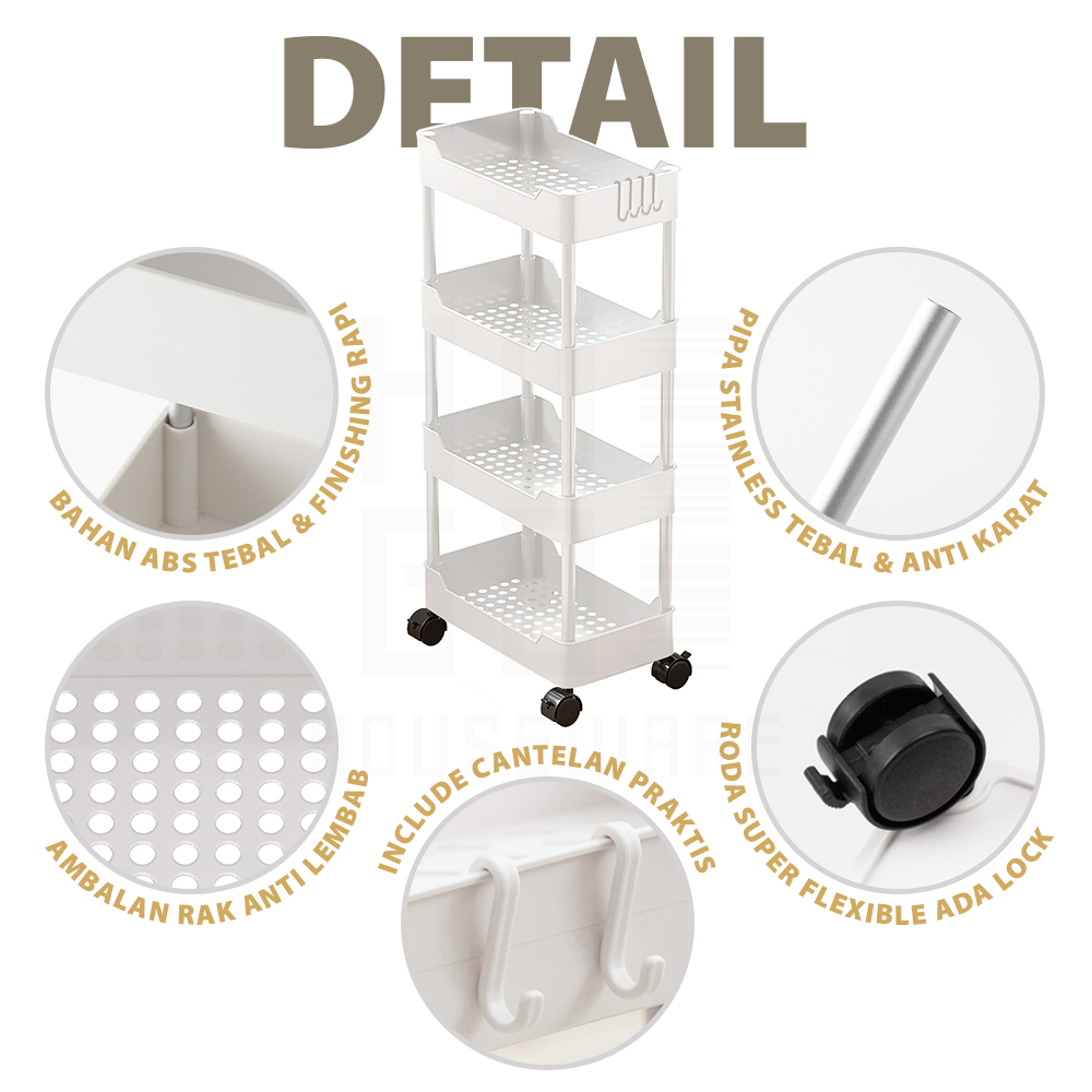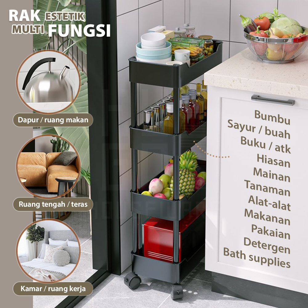 HUGO Rak Troli Susun Serbaguna Dapur Makanan Buah Kamar Tidur Kamar Mandi Toilet Dengan Roda / HUGO OFFICIAL
