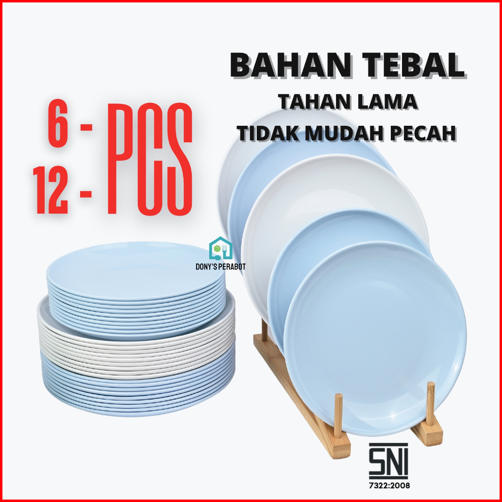 Piring Melamin Asli Tebal 1lusin 12pcs 7 8 9 Inch Anti Pecah Tahan Panas Kue Spageti