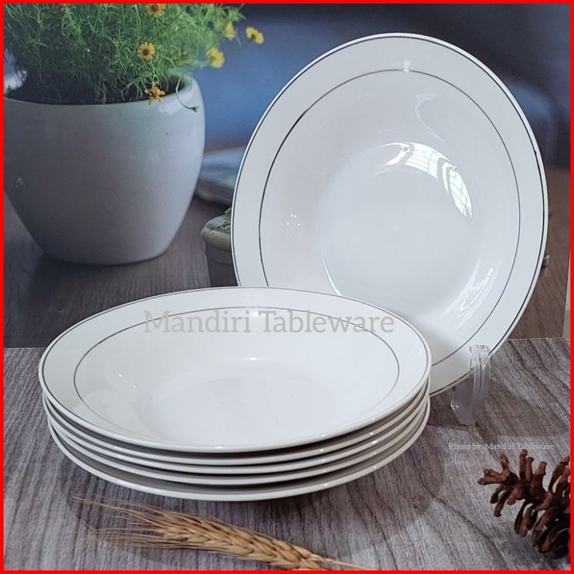 6 Pcs Piring Makan Cekung Keramik Ukuran 22 5 Cm Line 2 Best Quality