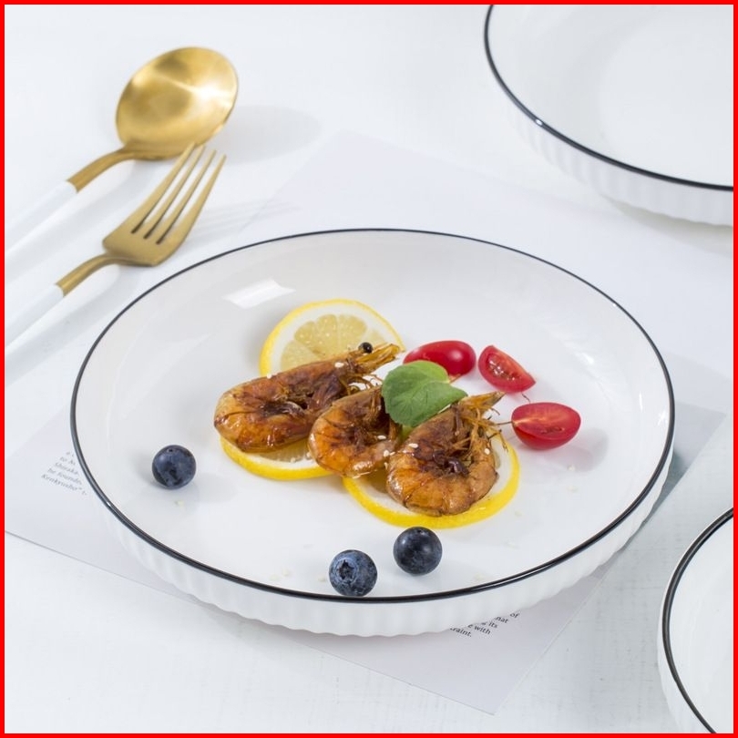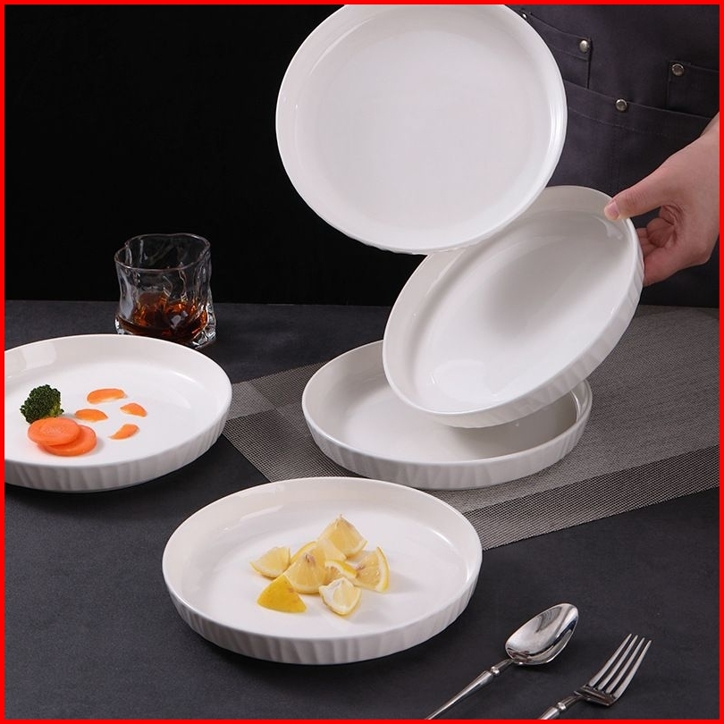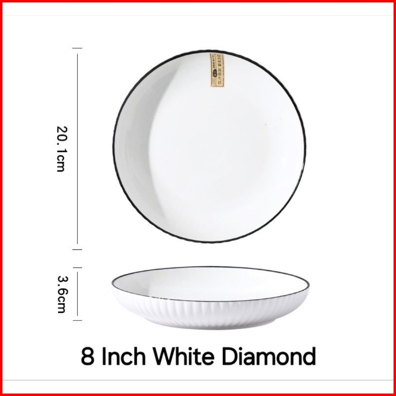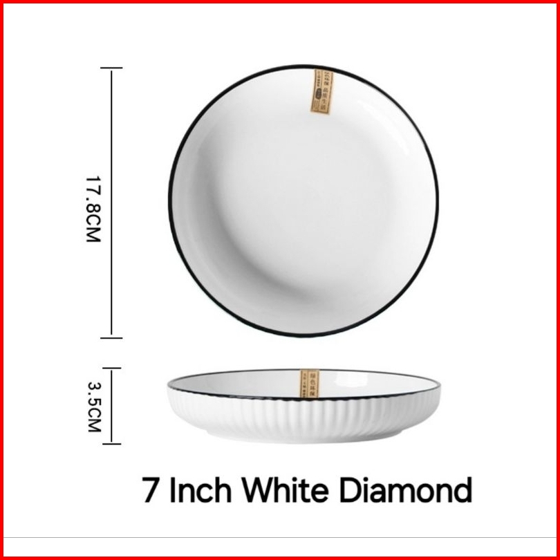 Piring Porcelain White Diamond Elegant Plate 7 8 Inch Ukuran 18 Dan 20 Cm