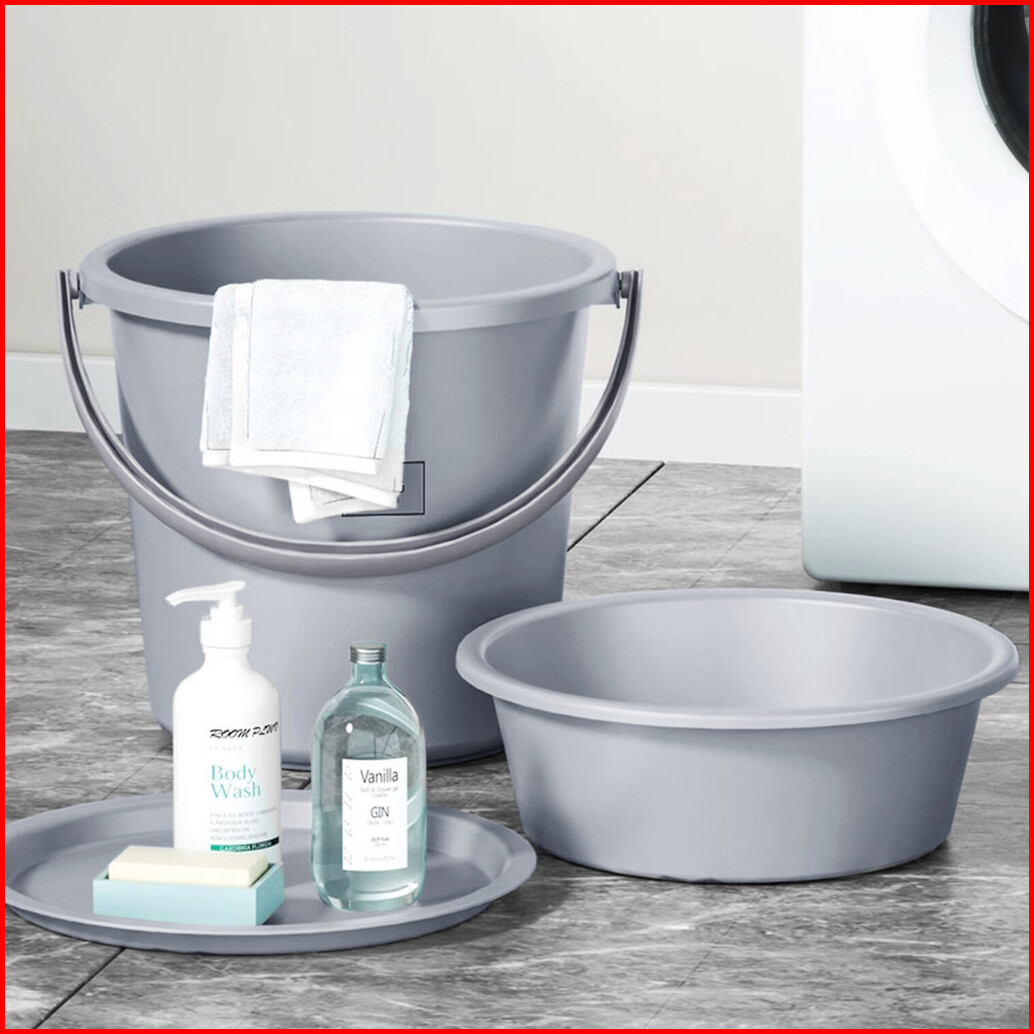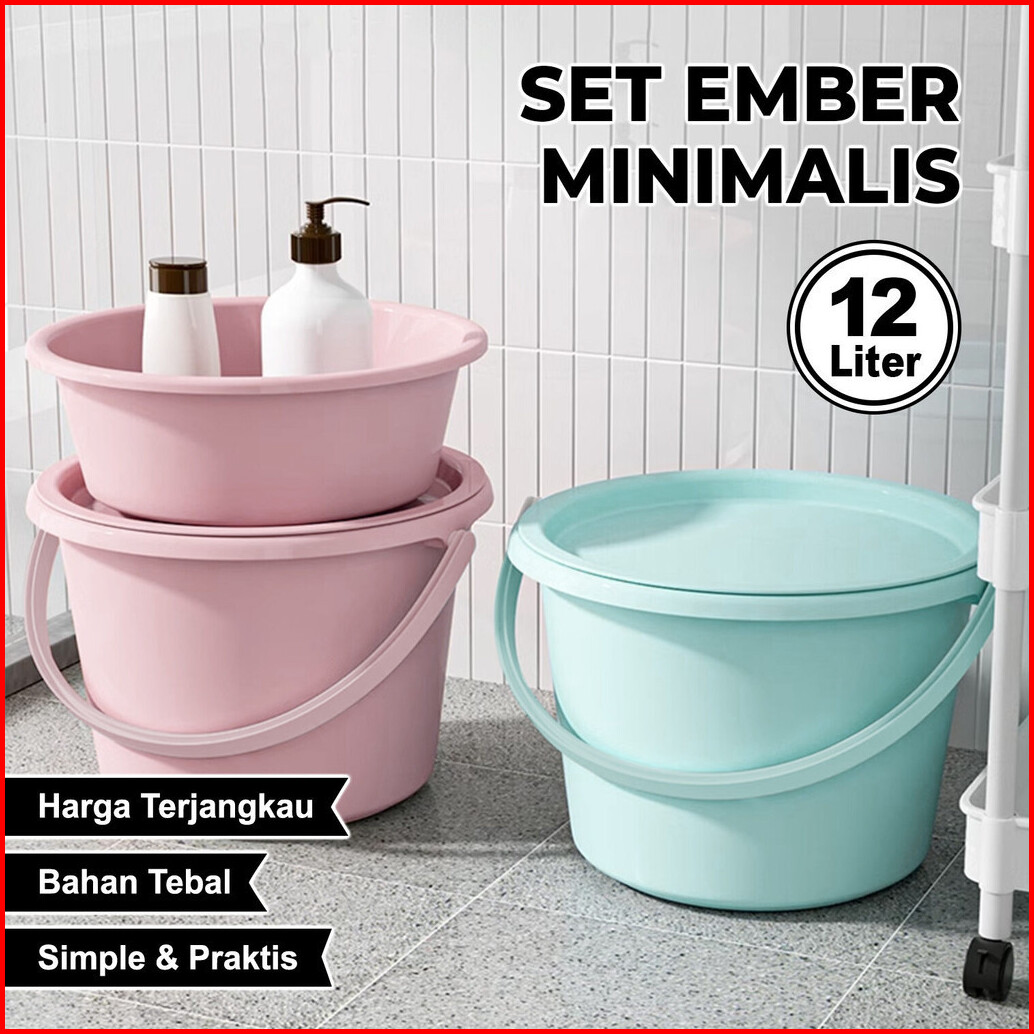Hydrink - Satu Set Ember 12 Liter Baskom 6 Liter Plastik Baskom Air Dengan Tutup Anti Pecah - Pbr-cb