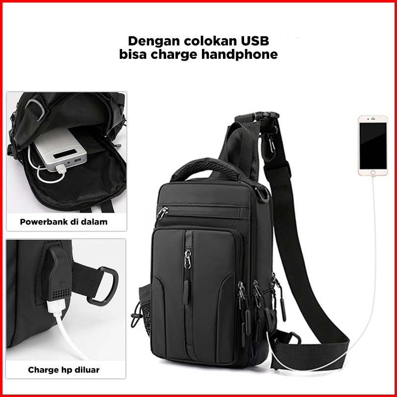 Freeknight Tas Selempang Travel Usb Port Sling Bag Tas Slempang Pria Keren Multifungsi Cross Body Bag Ts718