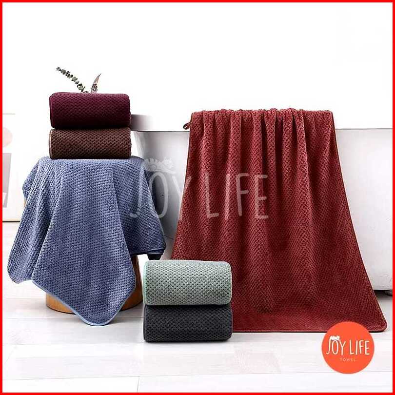 Joylife Handuk Mandi Bulu 70x140 Handuk Dewasa Handuk List Daya Serap Tinggi Dan Lembut Motif Dot Gelap Merek Sarang Leb