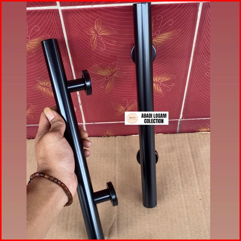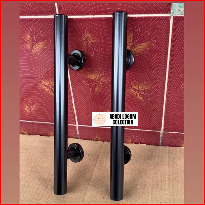Handle Pintu Rumah Gagang Pintu Rumah Model Bulat Full Black 33cm 45cm 60cm Tarikan Pintu Rumah Minimalis Murah Anti Kar