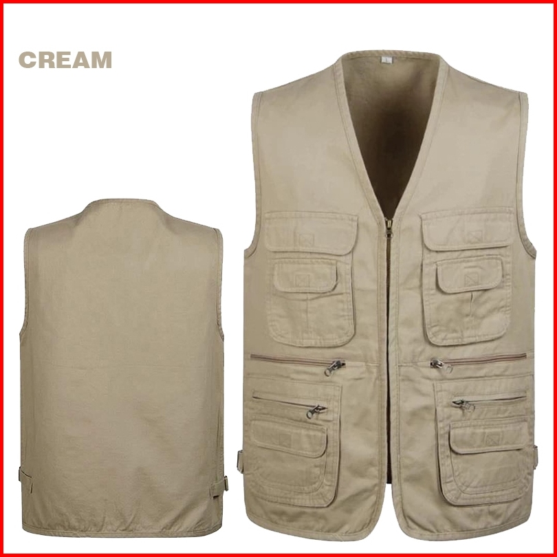 Costum Bordir Vest Jaket Rompi Pria Wanita Casual Tactical Cargo Lapangan Outdoor Seragam Kerja
