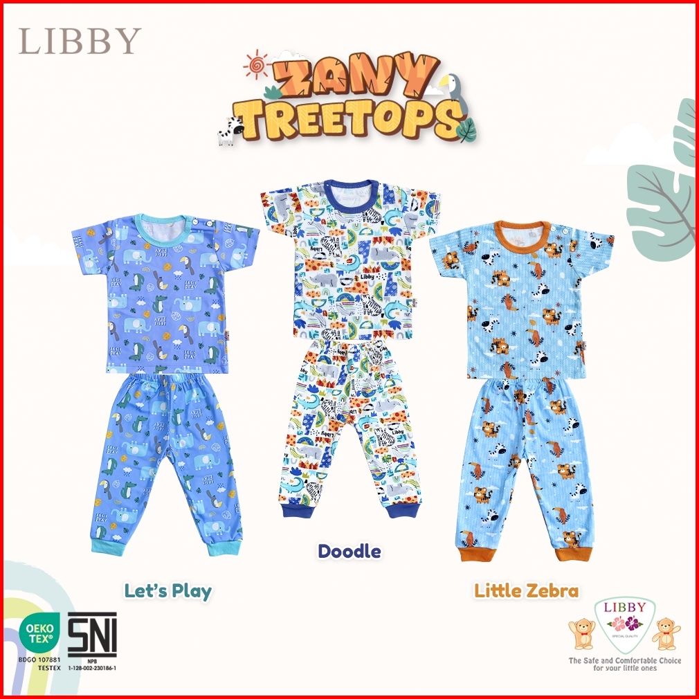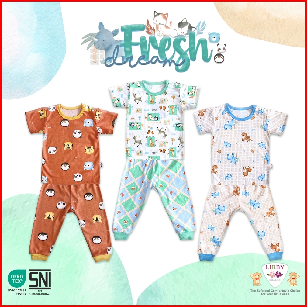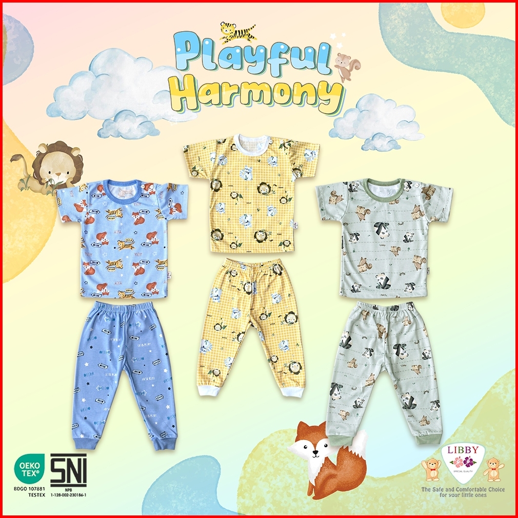 Libby Setelan Piyama Anak Laki Laki Perempuan Oblong Pendek Celana Panjang Motif Unisex 1 Stel Fresh Dream Playful Harmo