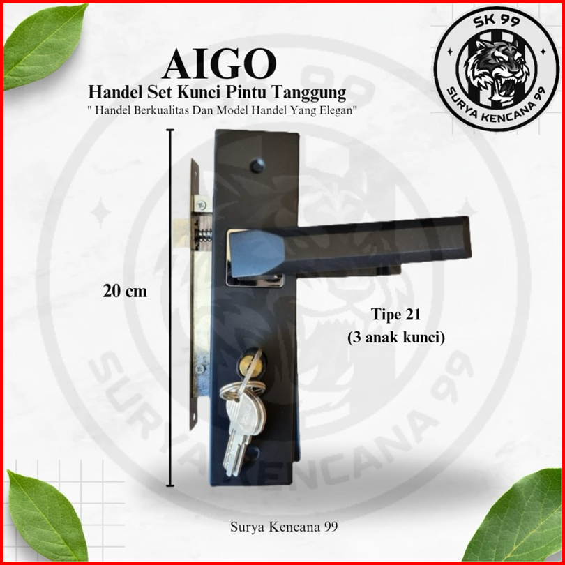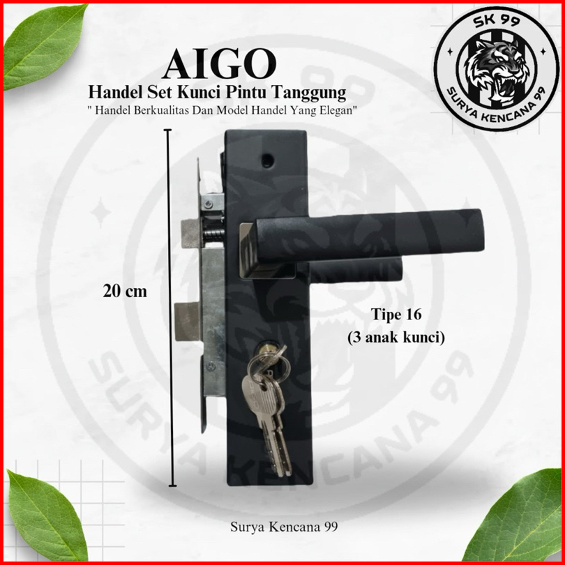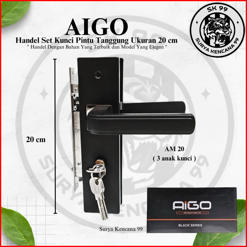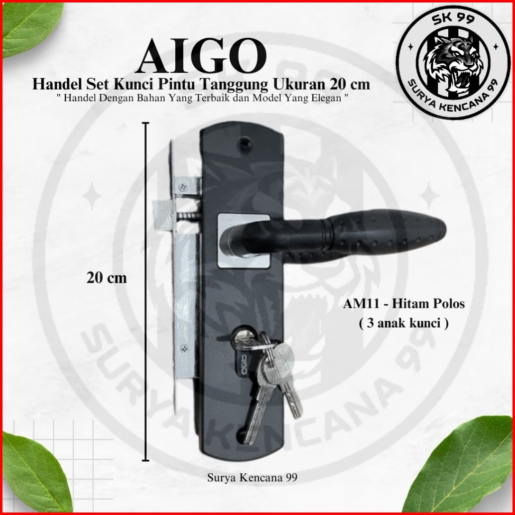 Harga Grosir Tersedia Promo Handle Kunci Pintu Tanggung Hitam Set Aigo 20 Cm Black Series