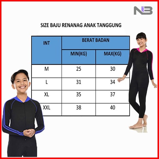 Niber Baju Renang Anak Tanggung Laki-laki Perempuan Usia 7-14 Th Sd-smp