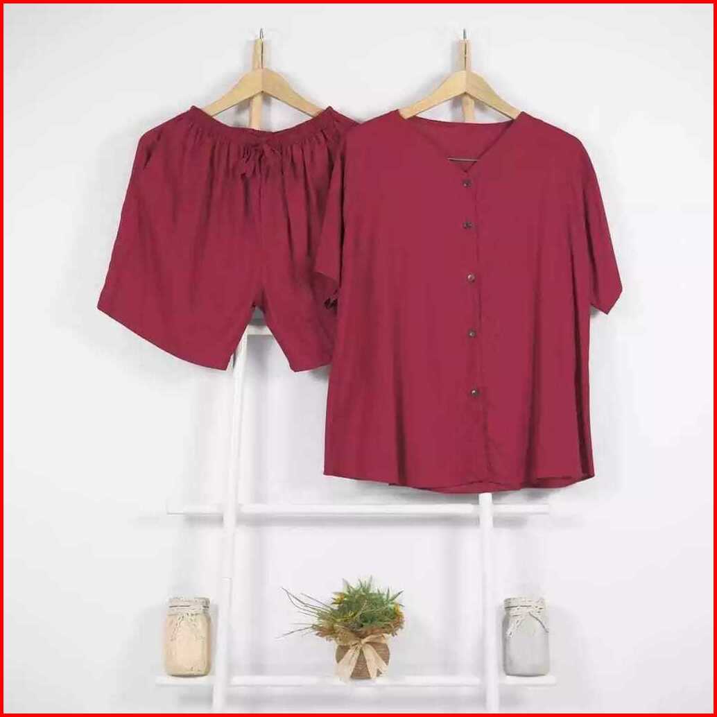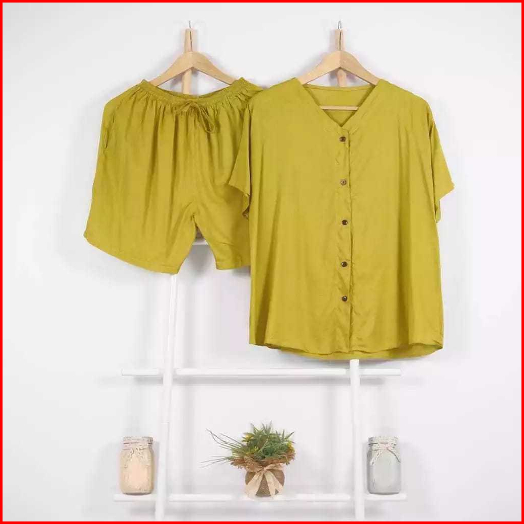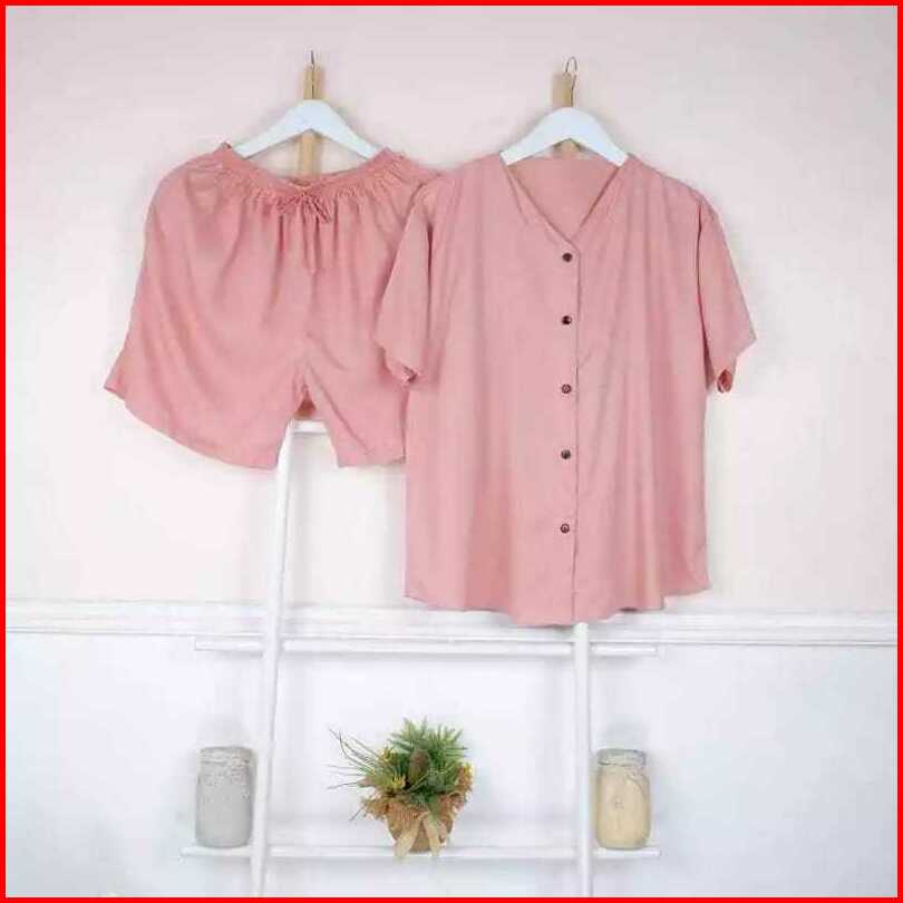 Murah.. Piyama Kancing Pendek Rayon Premium Wanita Kekinian