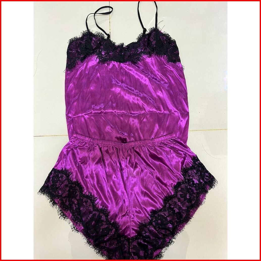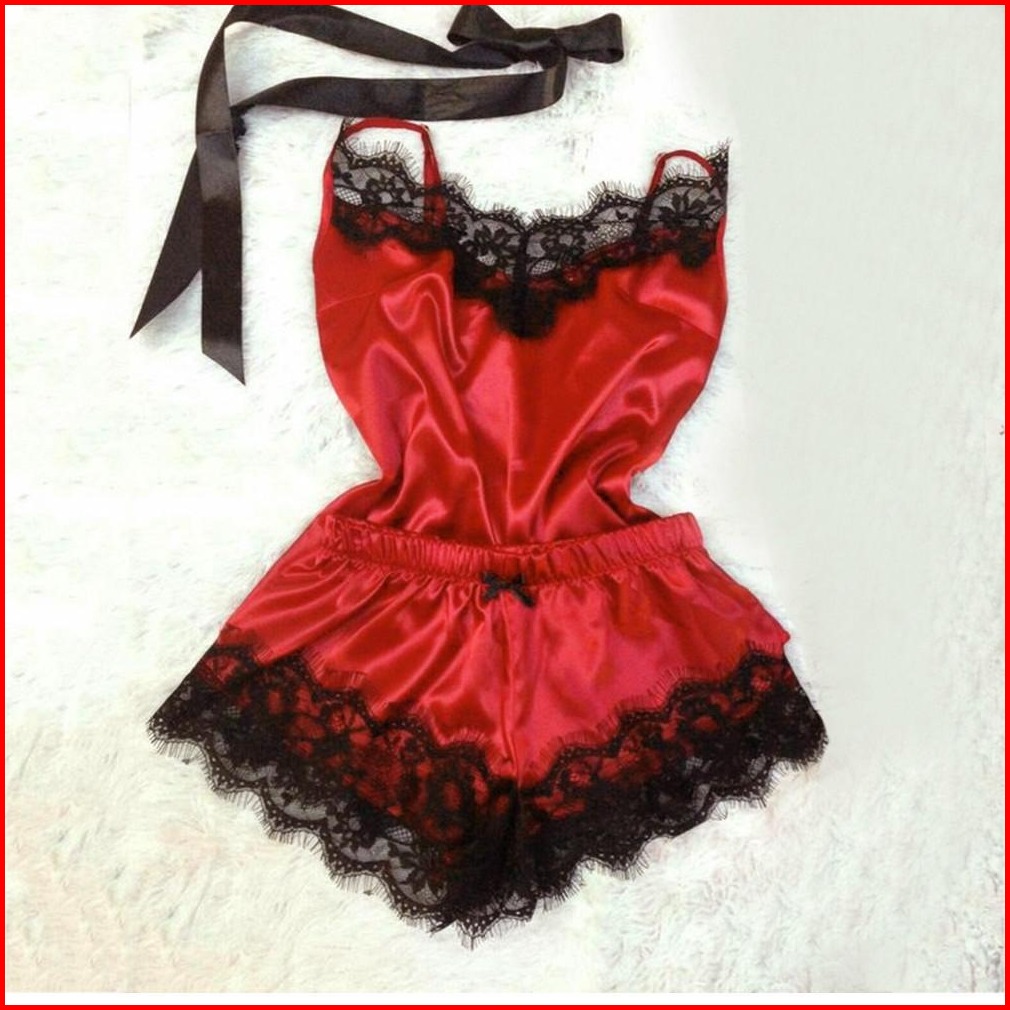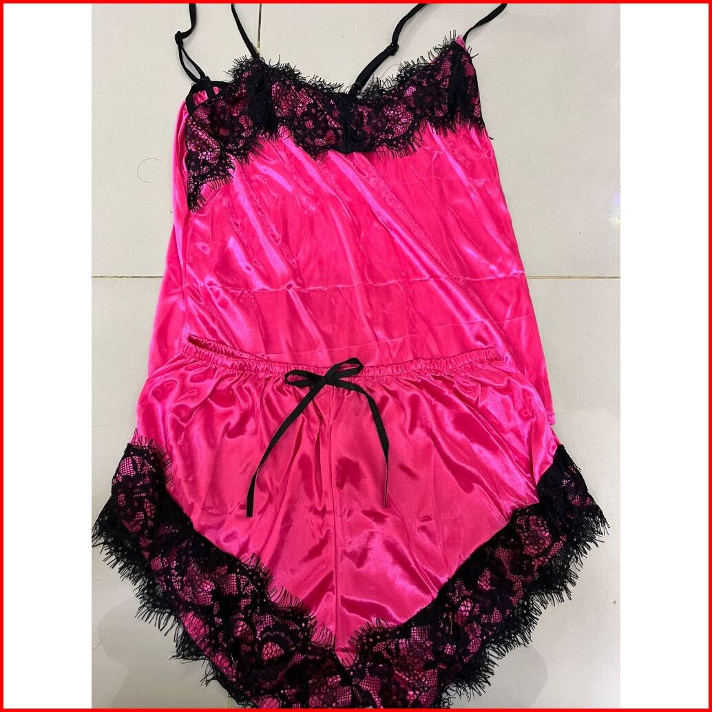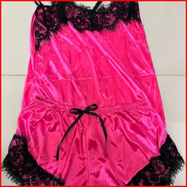 Stelan Piyama Baju Tidur Wanita Tali Satu Celana Pendek Satin Renda 15