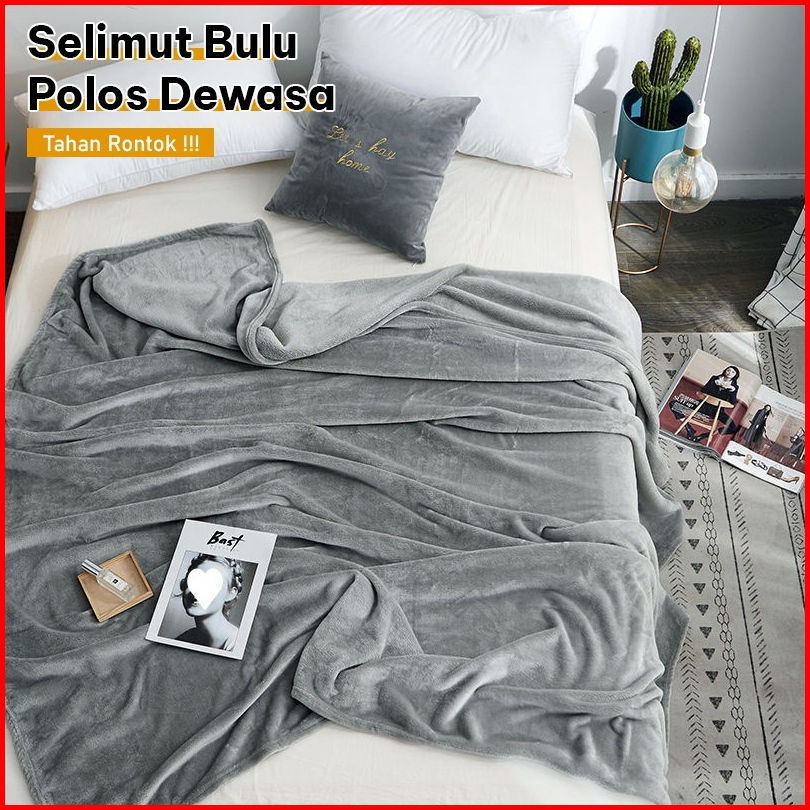 Selimut Bulu Polos Dewasa Ukuran 160cm X 200cm Selimut Bulu Lembut Bahan Microfiber - Hk800 - Furniland