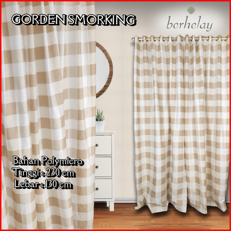 Gorden Smokring 12 Ring Polymicro Pintu Atau Jendela Motif Abstrak Kotak Emily Khaki