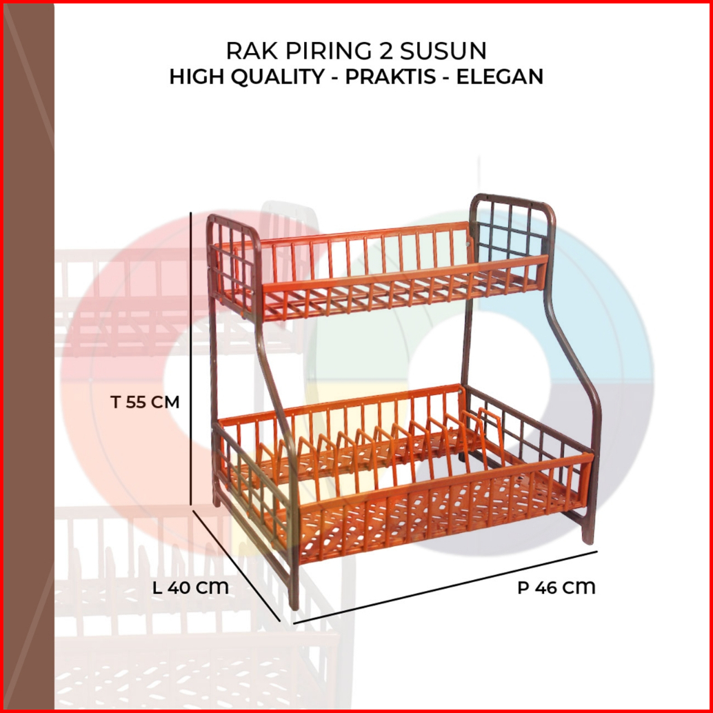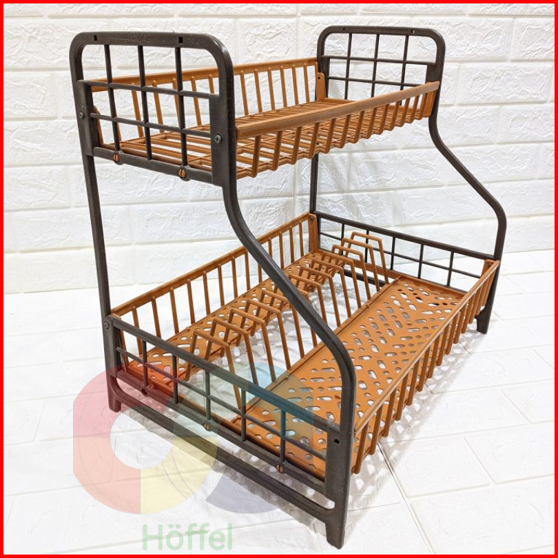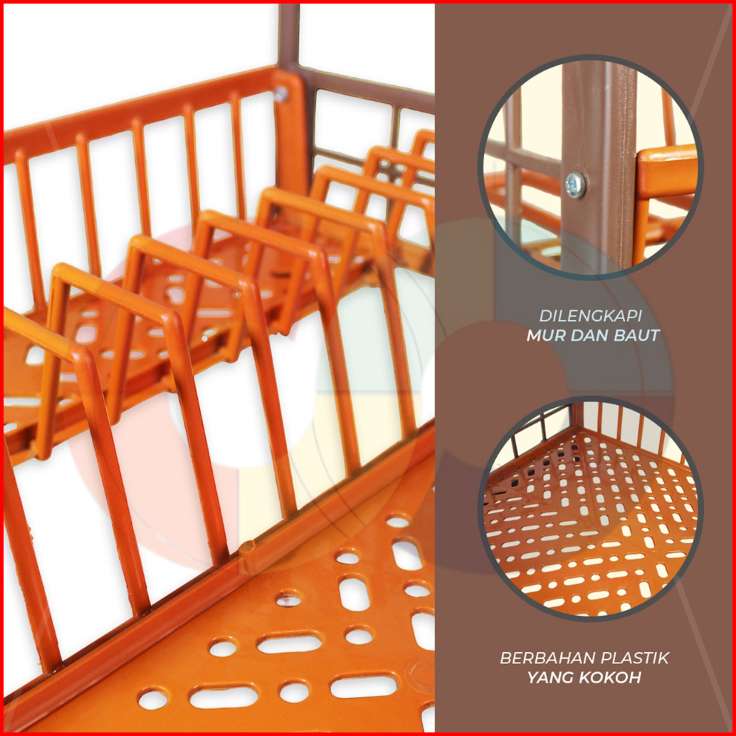 Rak Piring Plastik Susun 2 Coklat - Rak Dapur Serbaguna Rak Wastafel Rak Termurah