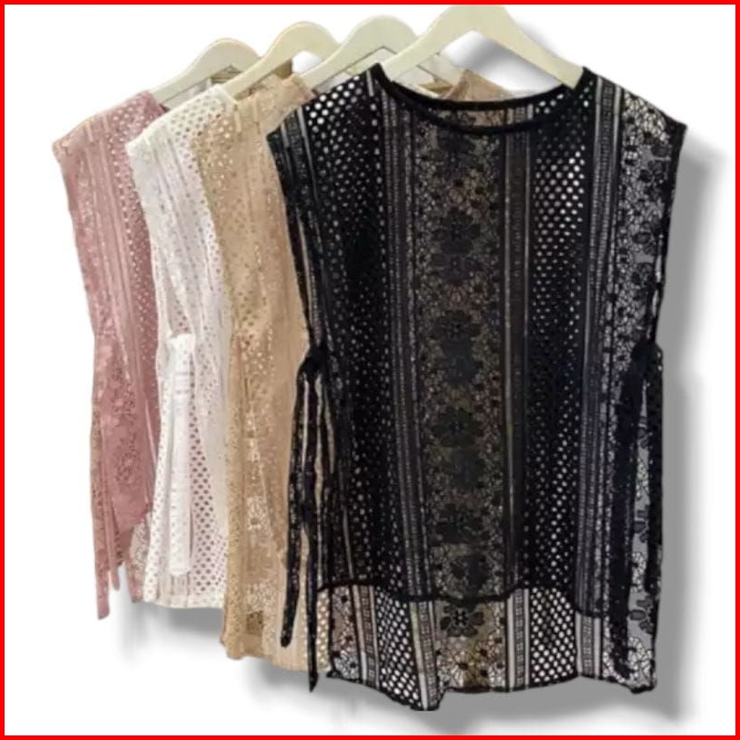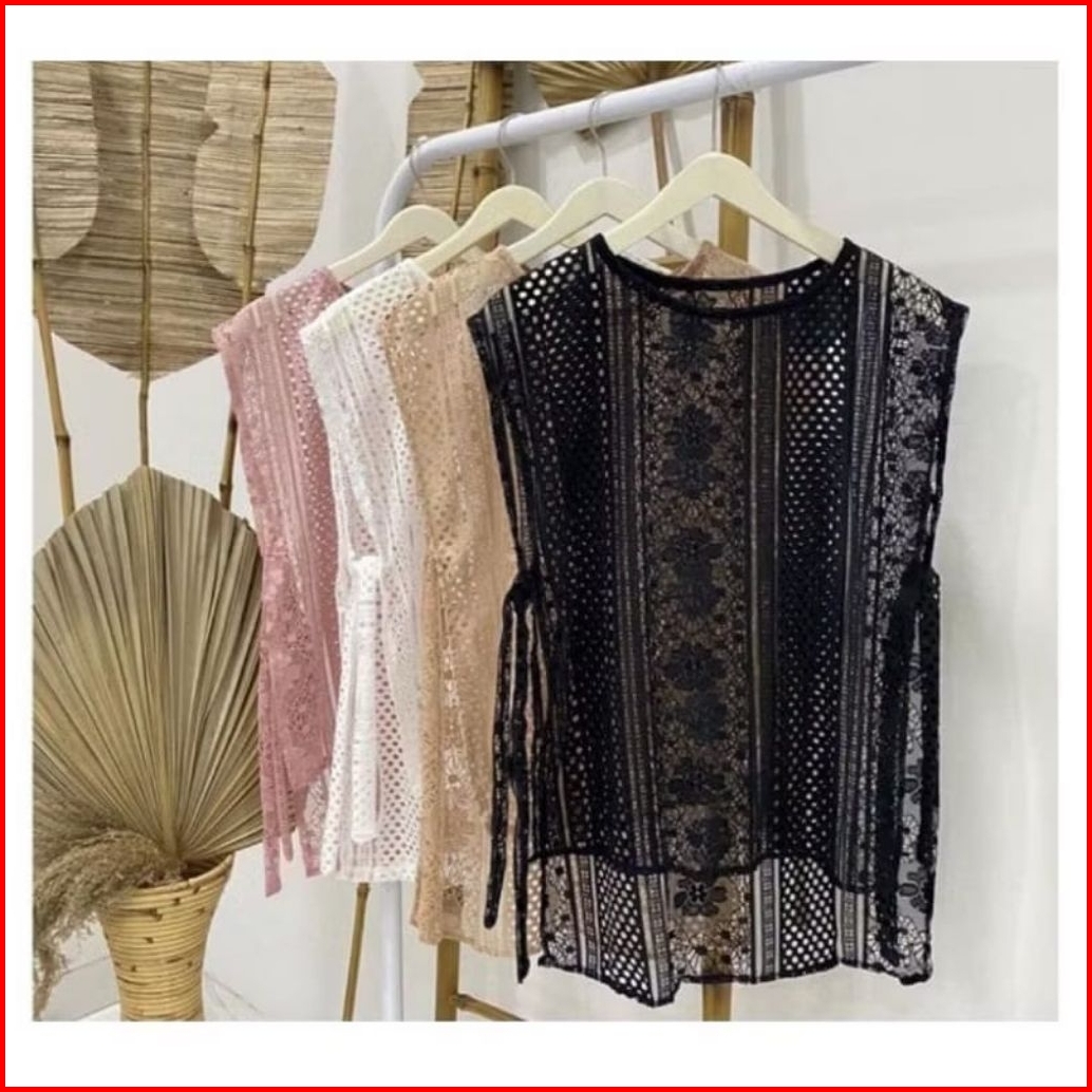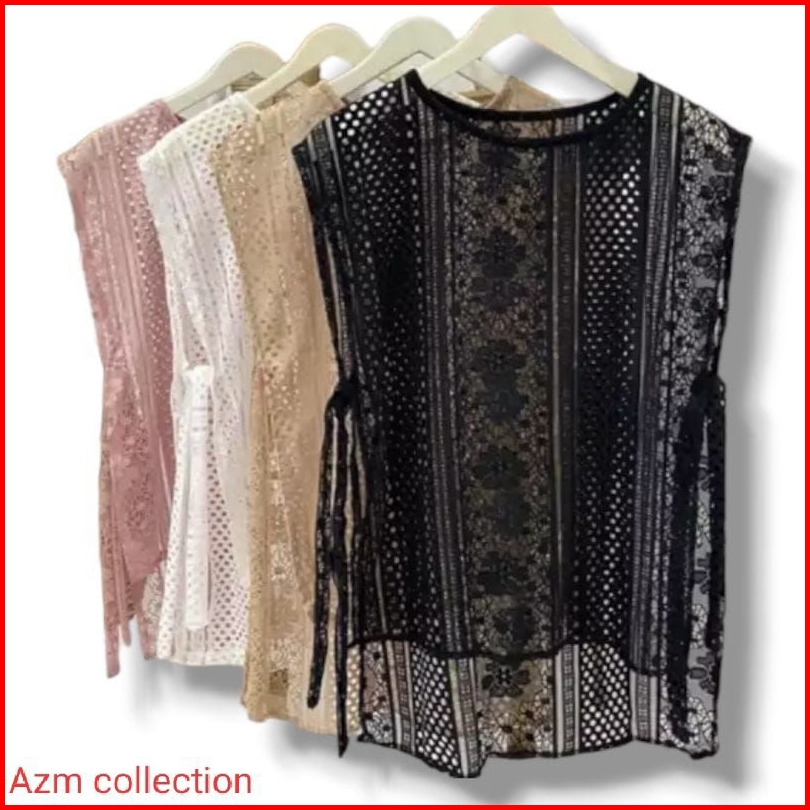 Azmi- Vest Brukat Tali Premium Lace Brukat Vest Rompi Brukat Rompi Brokat Wanita Casual Atasan Tali Samping Motif