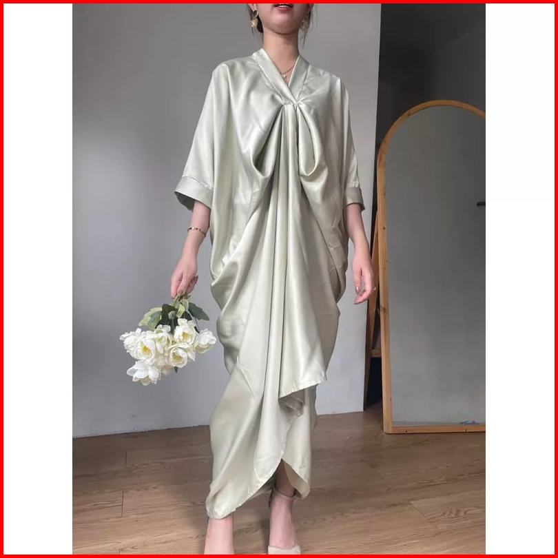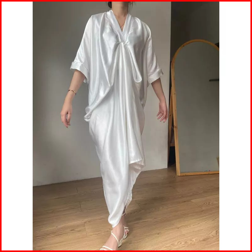 Setelan Kaftan Satin Terbaru One Set Kaftan Kekinian Baju Set Casual Kaftan Glamour Kaftan Polos Variasi Dada Baju Set M