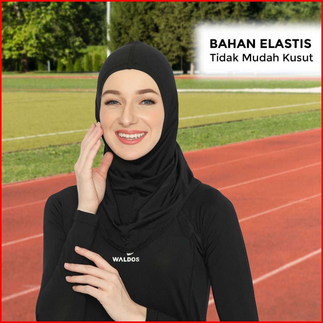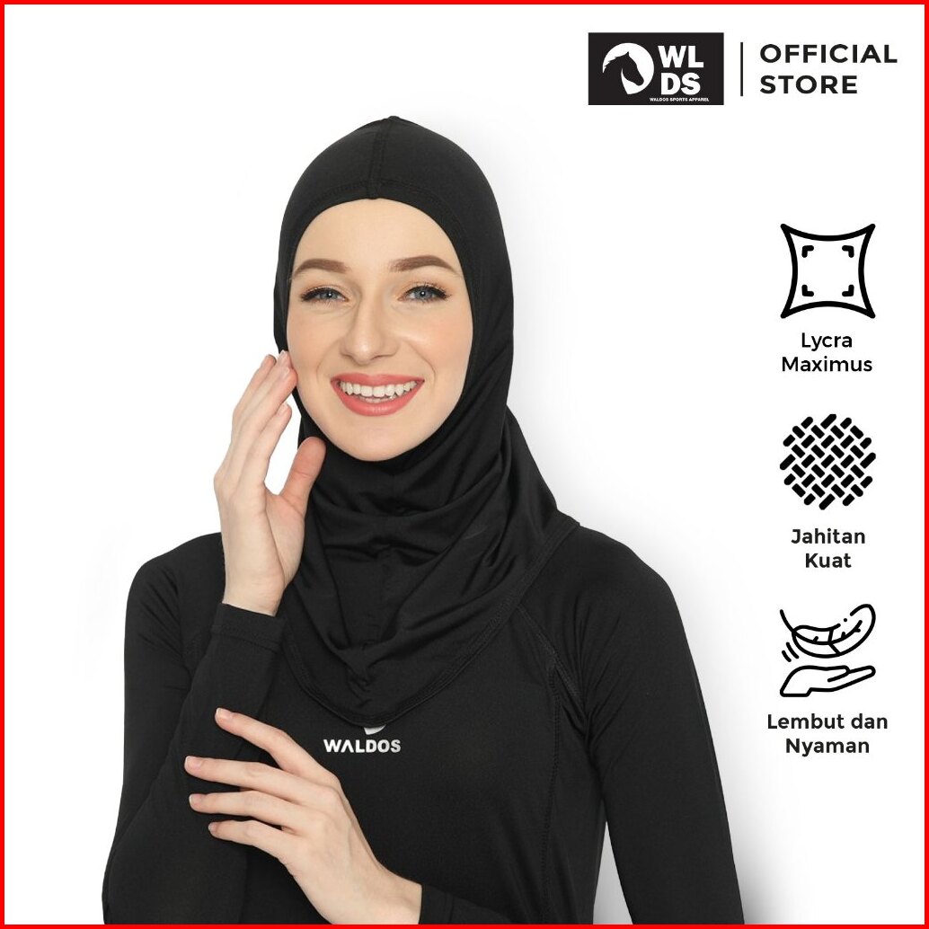 Wlds Exclusive Hijab Wanita Jilbab Sport Premium Lycra Hitam