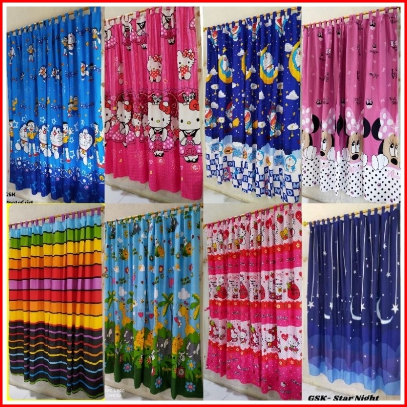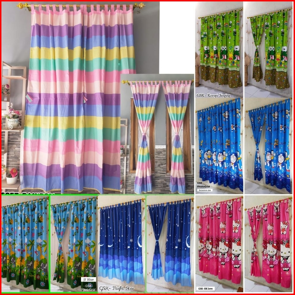 Tirai Gorden Pintu Dan Jendela Tali Perekat Moonstar Doraemon Hello Kitty Keropi Jungle - Gorden Anak Kartun