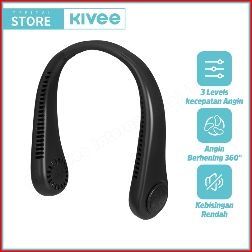 Kivee Kipas Leher Portable Kv-fa92 Black 800mah 3-speed Sports Fan Outdoor Cooling Equipment