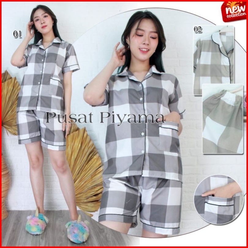 Baju Tidur Pendek Wanita Dewasa Kotak Emily Pajamas Kekinian