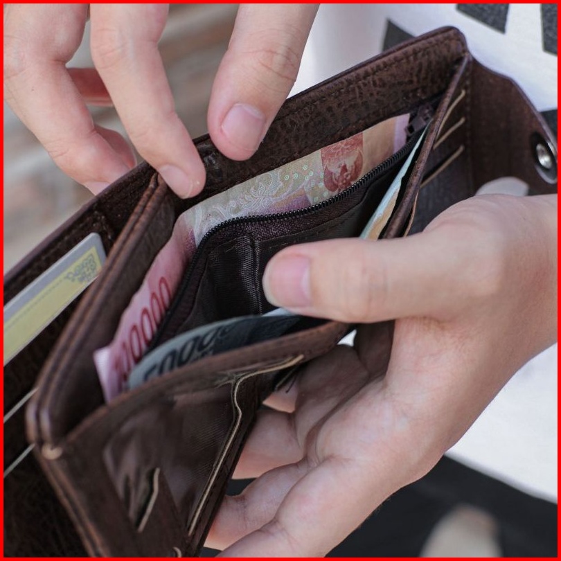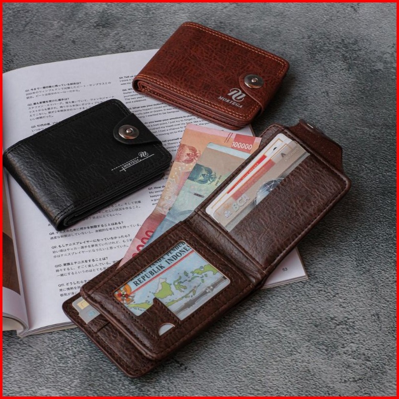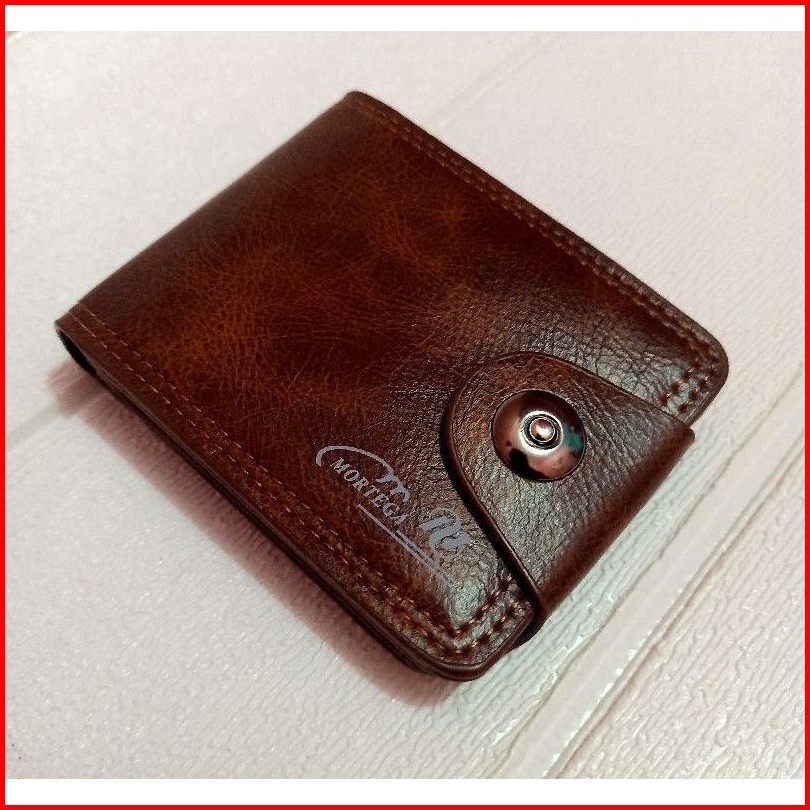 Dompet Pria Lipat Dua Model Kancing Magnet Dompet Kulit Import