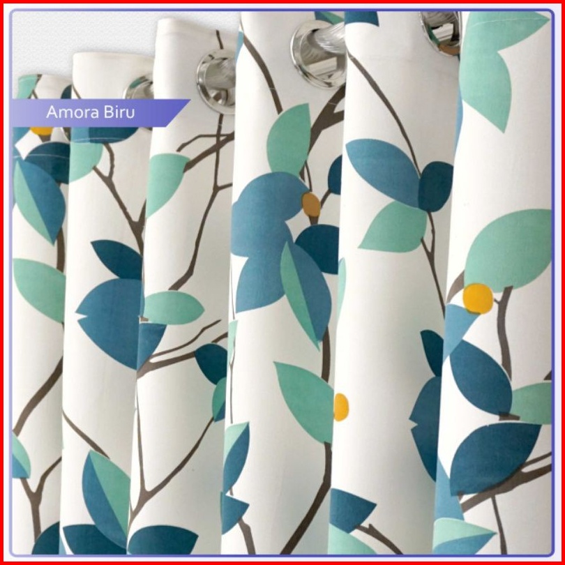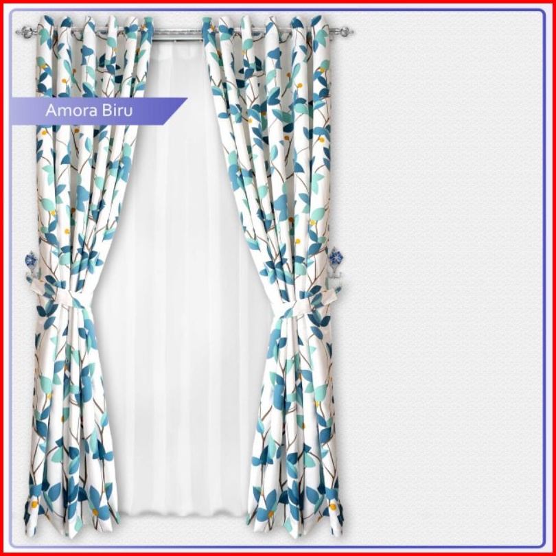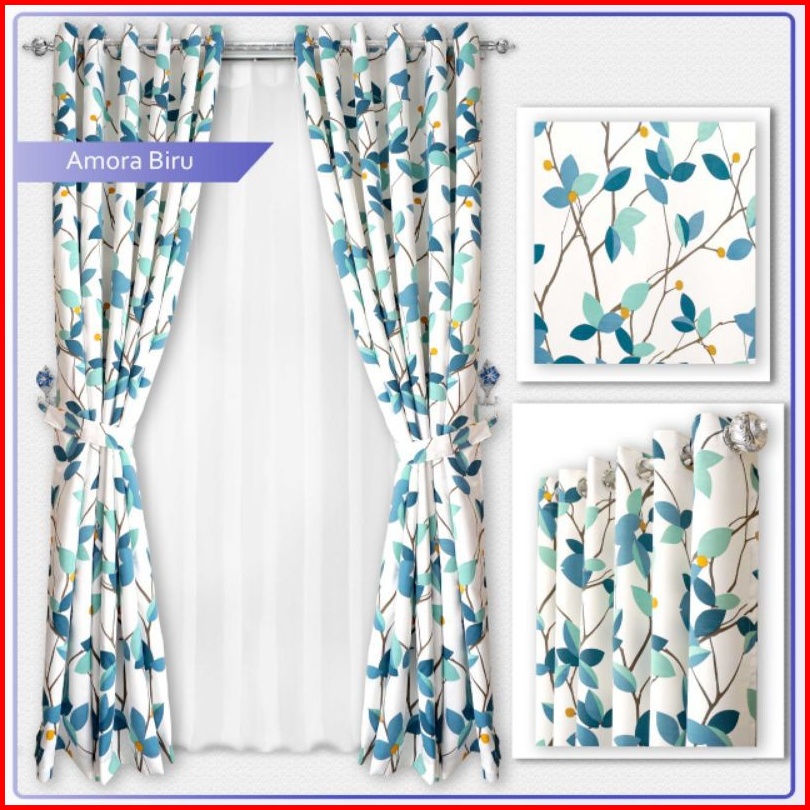 Gorden Jendela Pintu Murah Minimalis Motif Amora Biru Smokring 12 Ring Hordeng Korden Tirai Gordyn