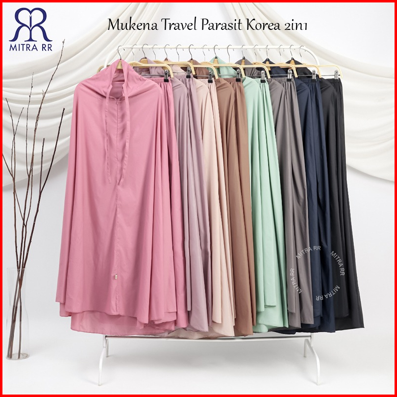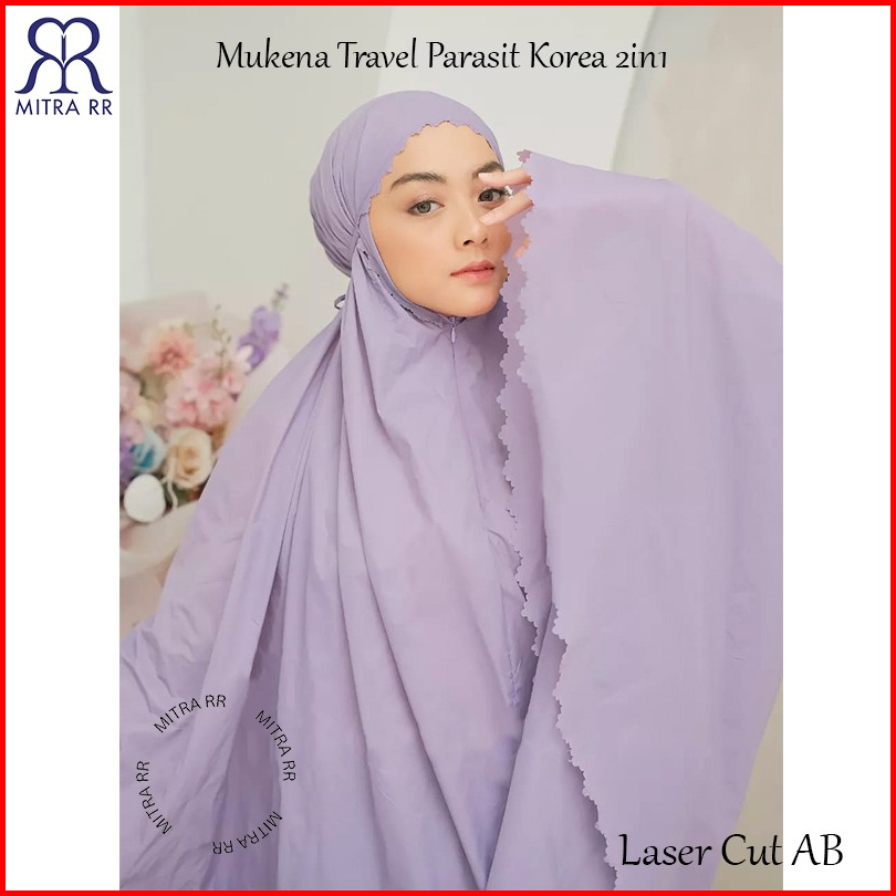 Mukena Travel Parasit Korea Premium Polos Dewasa Mukena Travel Pouch Tas Mini 2in1 Lasercut