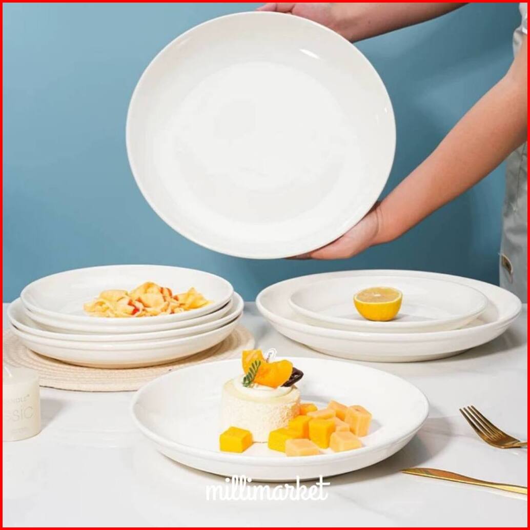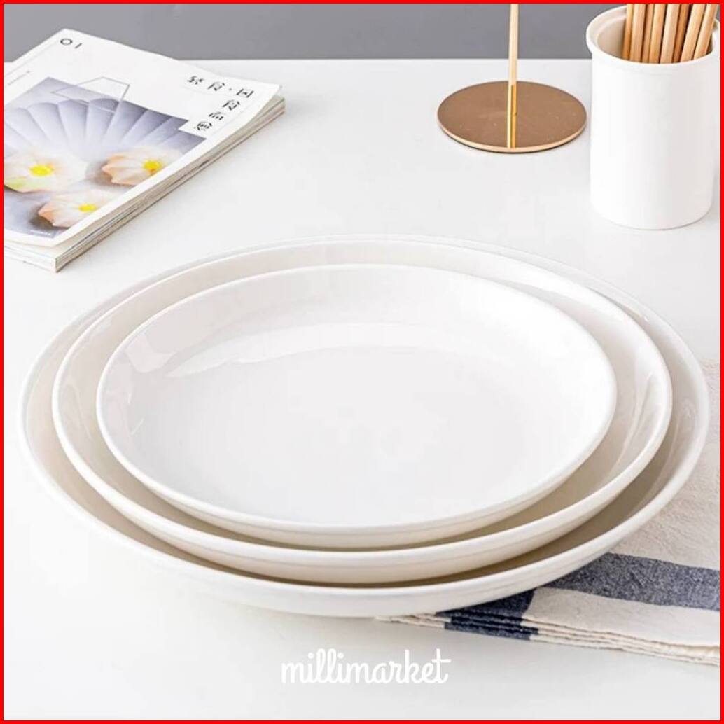 Milli Basic White Deep Plate Piring Makan Keramik Putih Polos 15cm 20cm 25cm 30cm Piring Saji